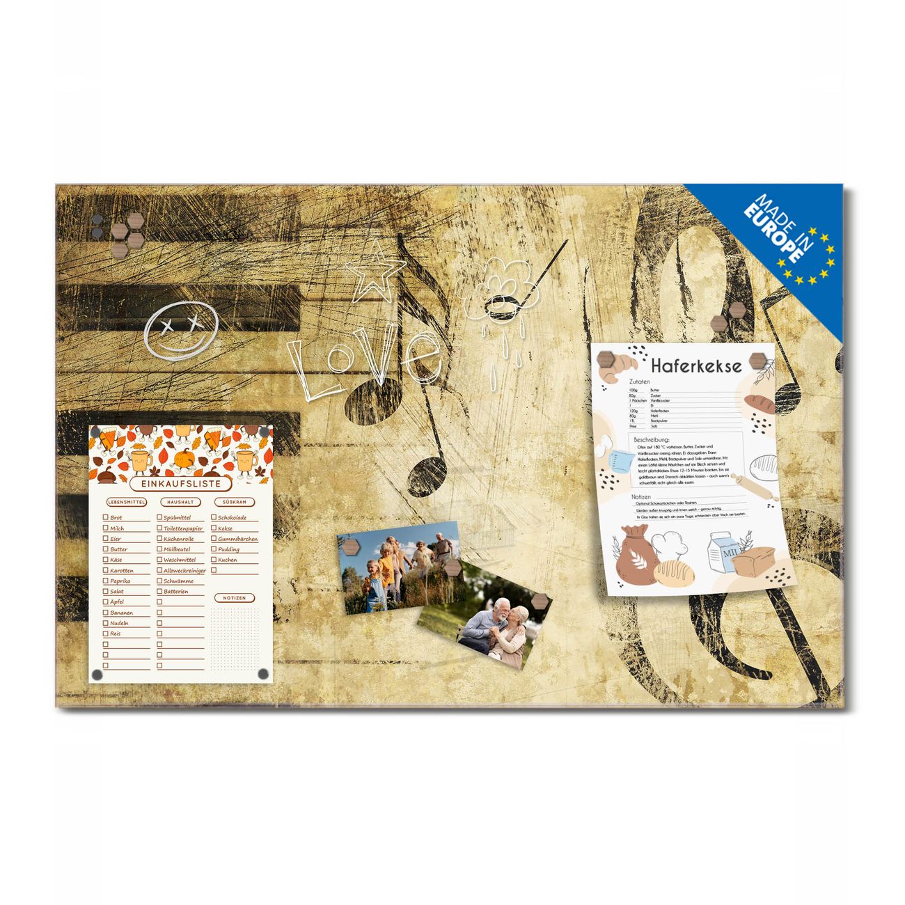 Ein Stück Design, das Ihren Alltag organisiert. Schreiben, heften, inspirieren - alles an einem Ort. Qualität, die man spürt. Montage leicht gemacht. Handwerk mit Herz - veredelt in Sachsen. Einzigartiges Design mit Motiv Motiv Music Beschreibbare Glasoberfläche, leicht zu reinigen Starke Magnetkraft durch Stahlrückwand Inklusive 4 Neodym-Magneten Flexible Montageoptionen Handveredelt in Sachsen - Qualität, die bleibt
