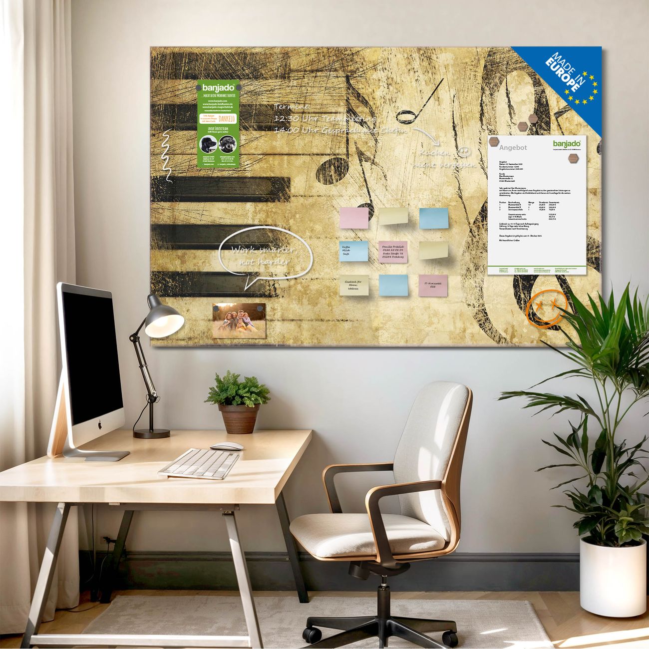 Jede Glas Magnettafel wird in unserer Werkstatt von Hand gefertigt und sorgfältig geprüft. So erhalten Sie ein echtes Qualitätsprodukt, das Funktion und Ästhetik perfekt vereint.?? Warum banjado?