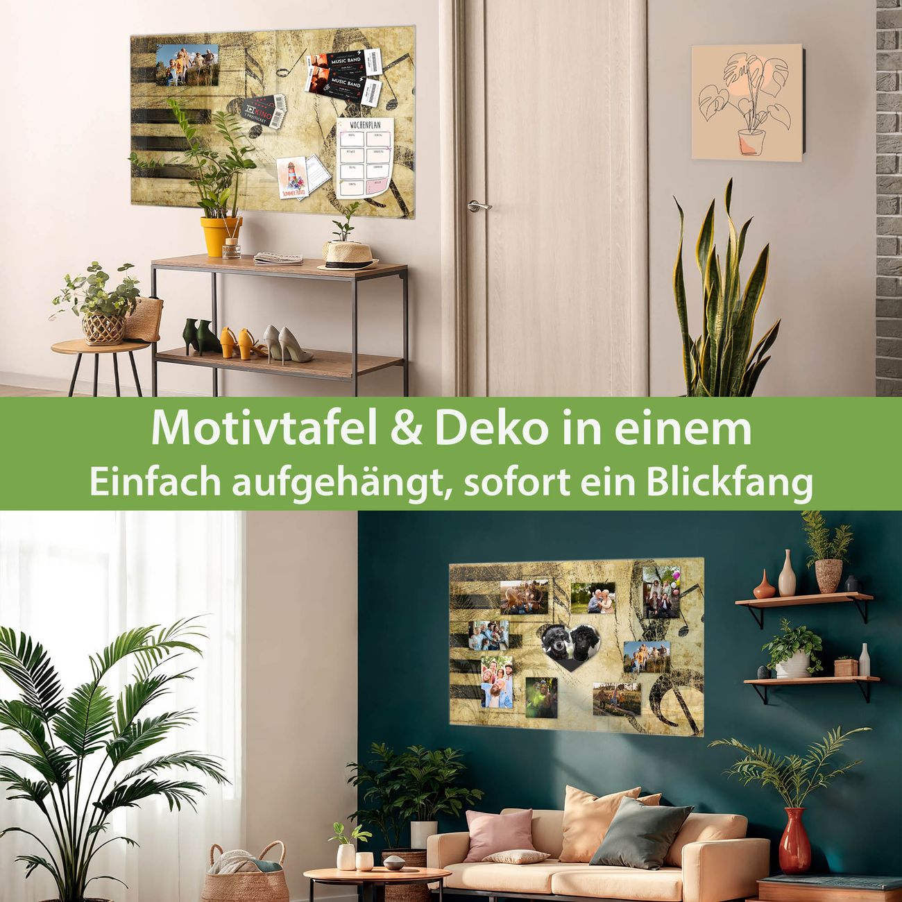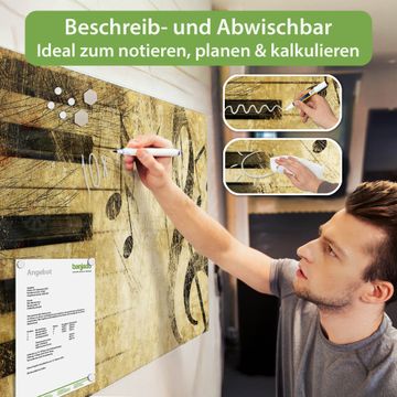 Die banjado Glas Magnettafel mit dem Motiv Motiv Music verbindet Funktionalität mit Stil. Sie ersetzt das Zettelchaos durch klare Strukturen und bringt dabei eine warme, natürliche Atmosphäre in Ihr Zuhause. Ob im Büro, in der Küche oder im Eingangsbereich - dieses Design-Board zieht Blicke an und sorgt für Ordnung mit Charakter.