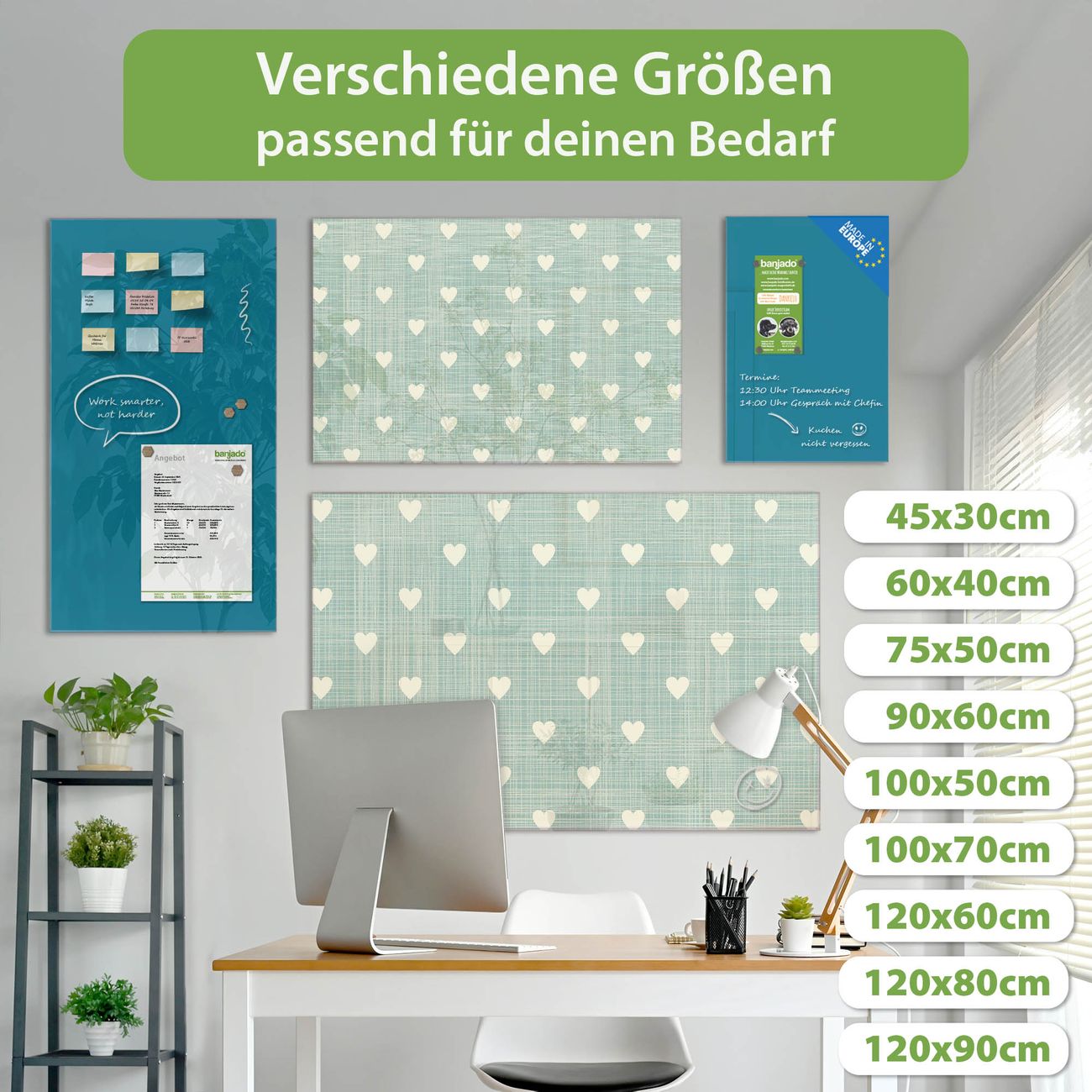 Jede Glas Magnettafel wird in unserer Werkstatt von Hand gefertigt und sorgfältig geprüft. So erhalten Sie ein echtes Qualitätsprodukt, das Funktion und Ästhetik perfekt vereint.?? Warum banjado?