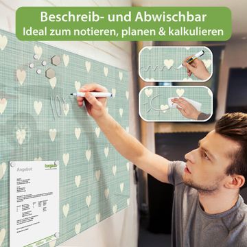 Die banjado Glas Magnettafel mit dem Motiv Motiv Muster Herzen verbindet Funktionalität mit Stil. Sie ersetzt das Zettelchaos durch klare Strukturen und bringt dabei eine warme, natürliche Atmosphäre in Ihr Zuhause. Ob im Büro, in der Küche oder im Eingangsbereich - dieses Design-Board zieht Blicke an und sorgt für Ordnung mit Charakter.