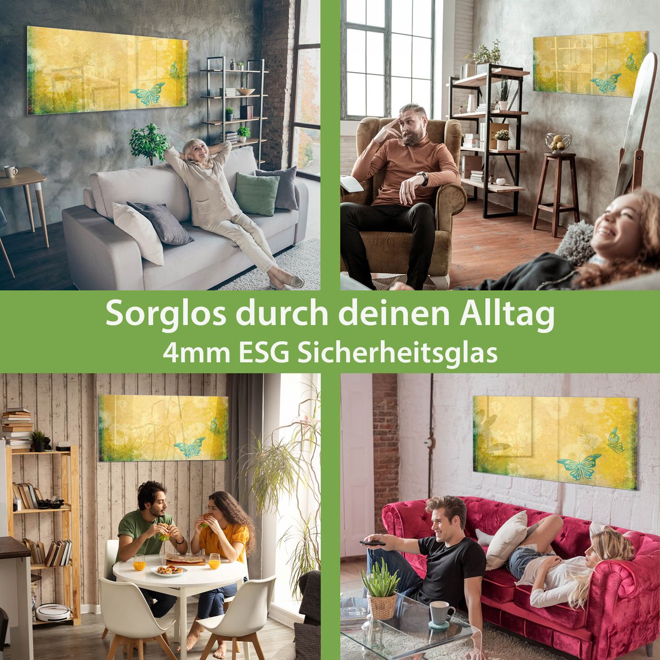 - Material: 4mm Sicherheitsglas mit Metallrückwand