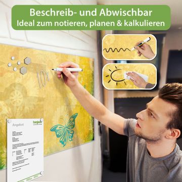 Die banjado Glas Magnettafel mit dem Motiv Motiv Muster Sommer verbindet Funktionalität mit Stil. Sie ersetzt das Zettelchaos durch klare Strukturen und bringt dabei eine warme, natürliche Atmosphäre in Ihr Zuhause. Ob im Büro, in der Küche oder im Eingangsbereich - dieses Design-Board zieht Blicke an und sorgt für Ordnung mit Charakter.