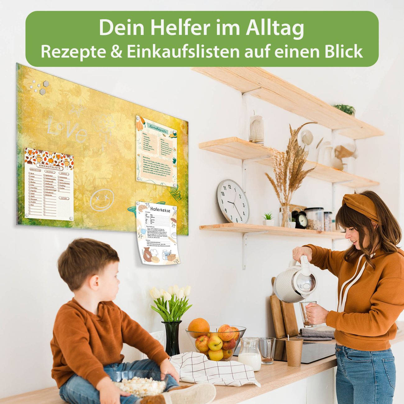 Ein Stück Design, das Ihren Alltag organisiert. Schreiben, heften, inspirieren - alles an einem Ort. Qualität, die man spürt. Montage leicht gemacht. Handwerk mit Herz - veredelt in Sachsen. Einzigartiges Design mit Motiv Motiv Muster Sommer Beschreibbare Glasoberfläche, leicht zu reinigen Starke Magnetkraft durch Stahlrückwand Inklusive 4 Neodym-Magneten Flexible Montageoptionen Handveredelt in Sachsen - Qualität, die bleibt