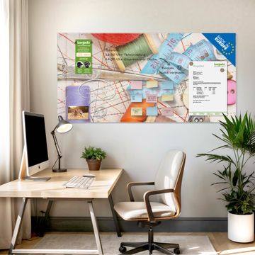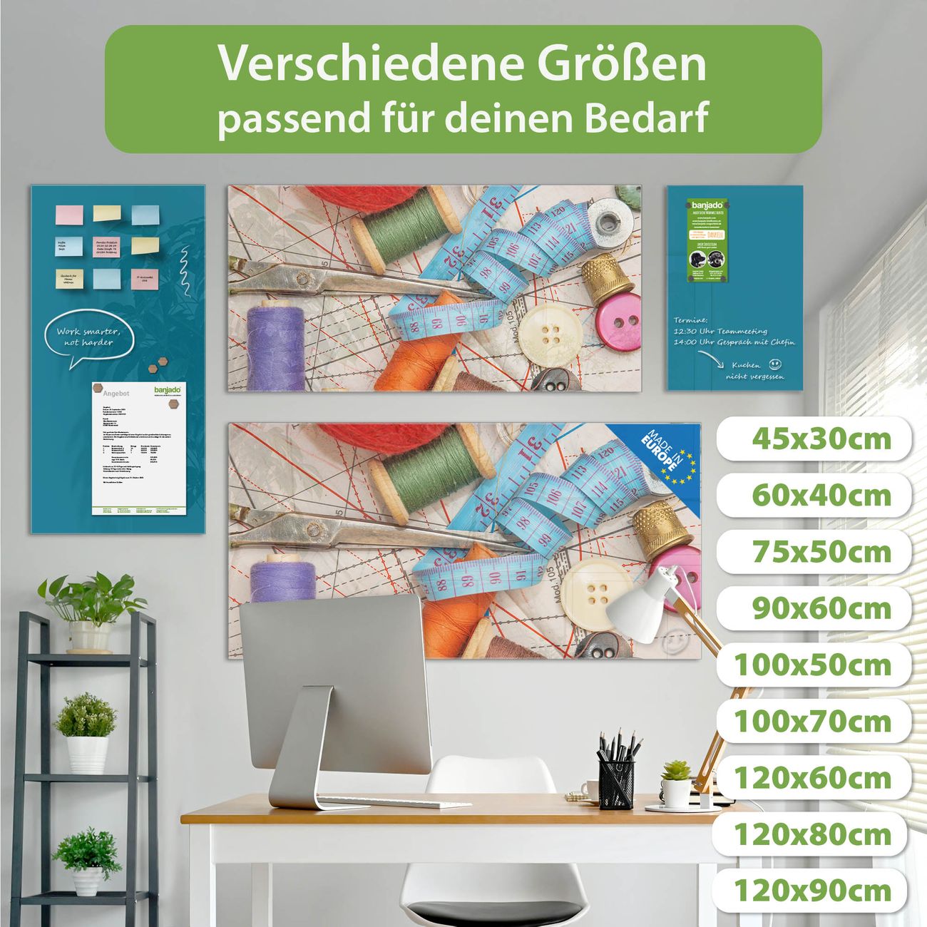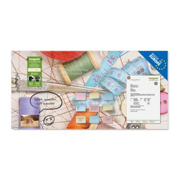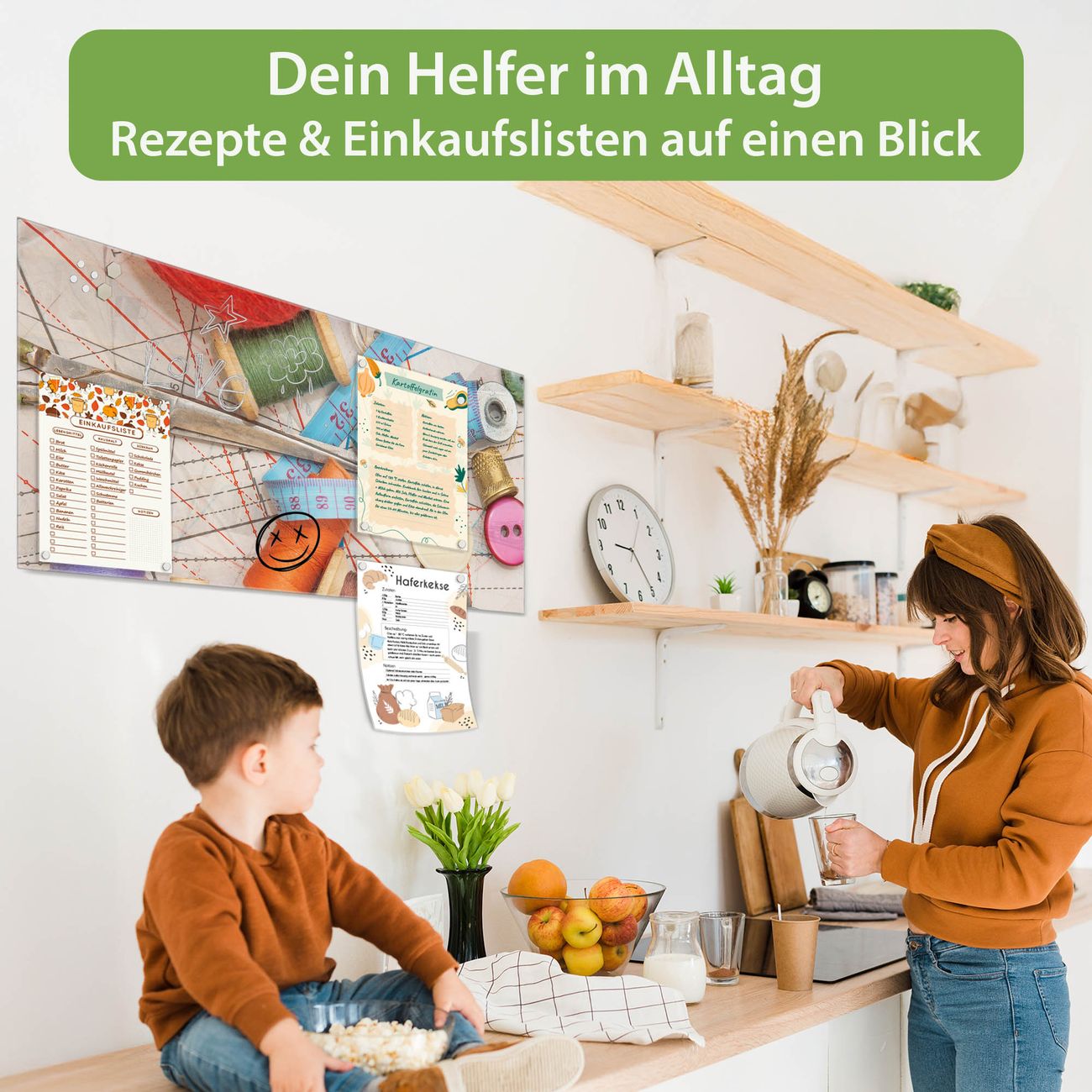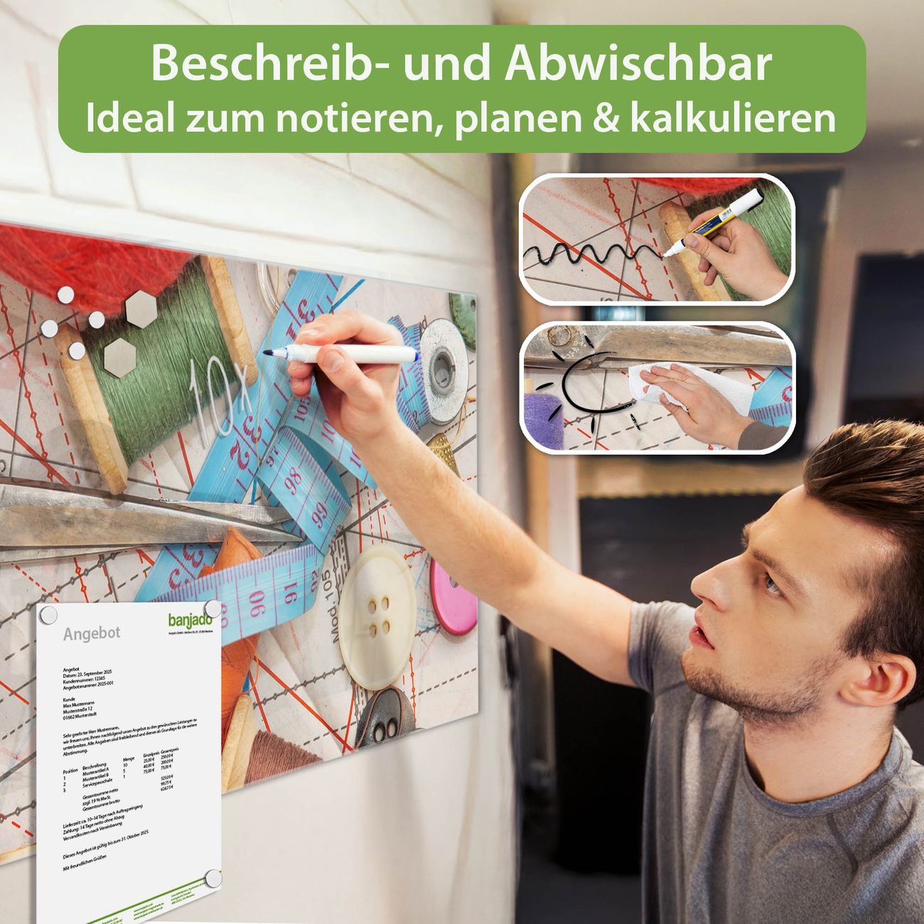 Die banjado Glas Magnettafel mit dem Motiv Motiv Nähen verbindet Funktionalität mit Stil. Sie ersetzt das Zettelchaos durch klare Strukturen und bringt dabei eine warme, natürliche Atmosphäre in Ihr Zuhause. Ob im Büro, in der Küche oder im Eingangsbereich - dieses Design-Board zieht Blicke an und sorgt für Ordnung mit Charakter.