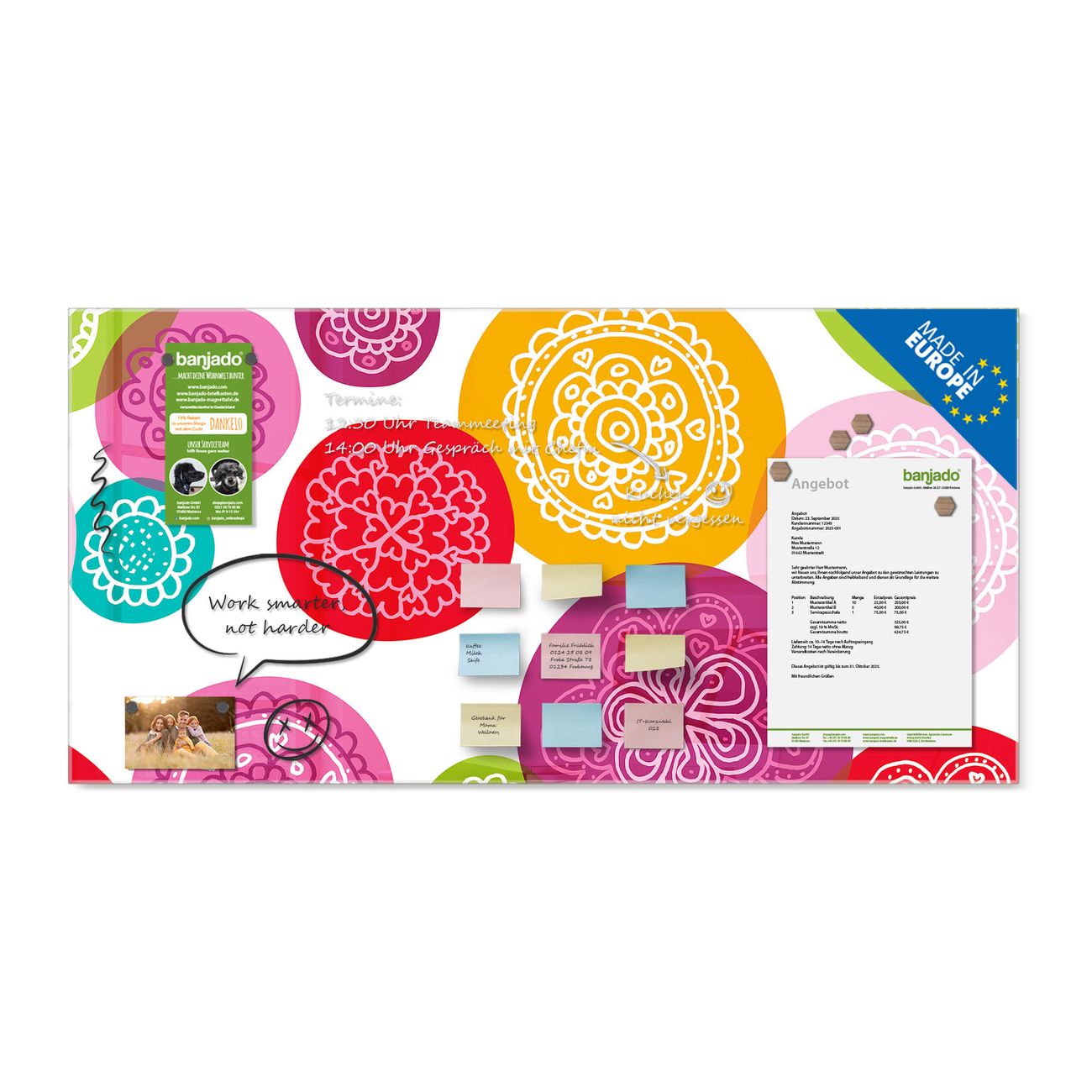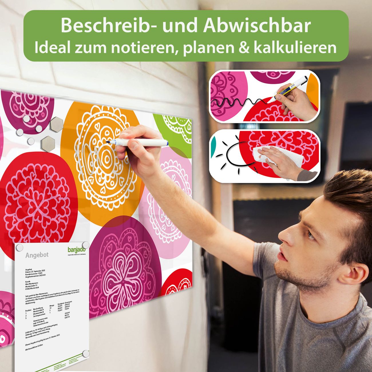 Die banjado Glas Magnettafel mit dem Motiv Motiv Naive Blüten verbindet Funktionalität mit Stil. Sie ersetzt das Zettelchaos durch klare Strukturen und bringt dabei eine warme, natürliche Atmosphäre in Ihr Zuhause. Ob im Büro, in der Küche oder im Eingangsbereich - dieses Design-Board zieht Blicke an und sorgt für Ordnung mit Charakter.