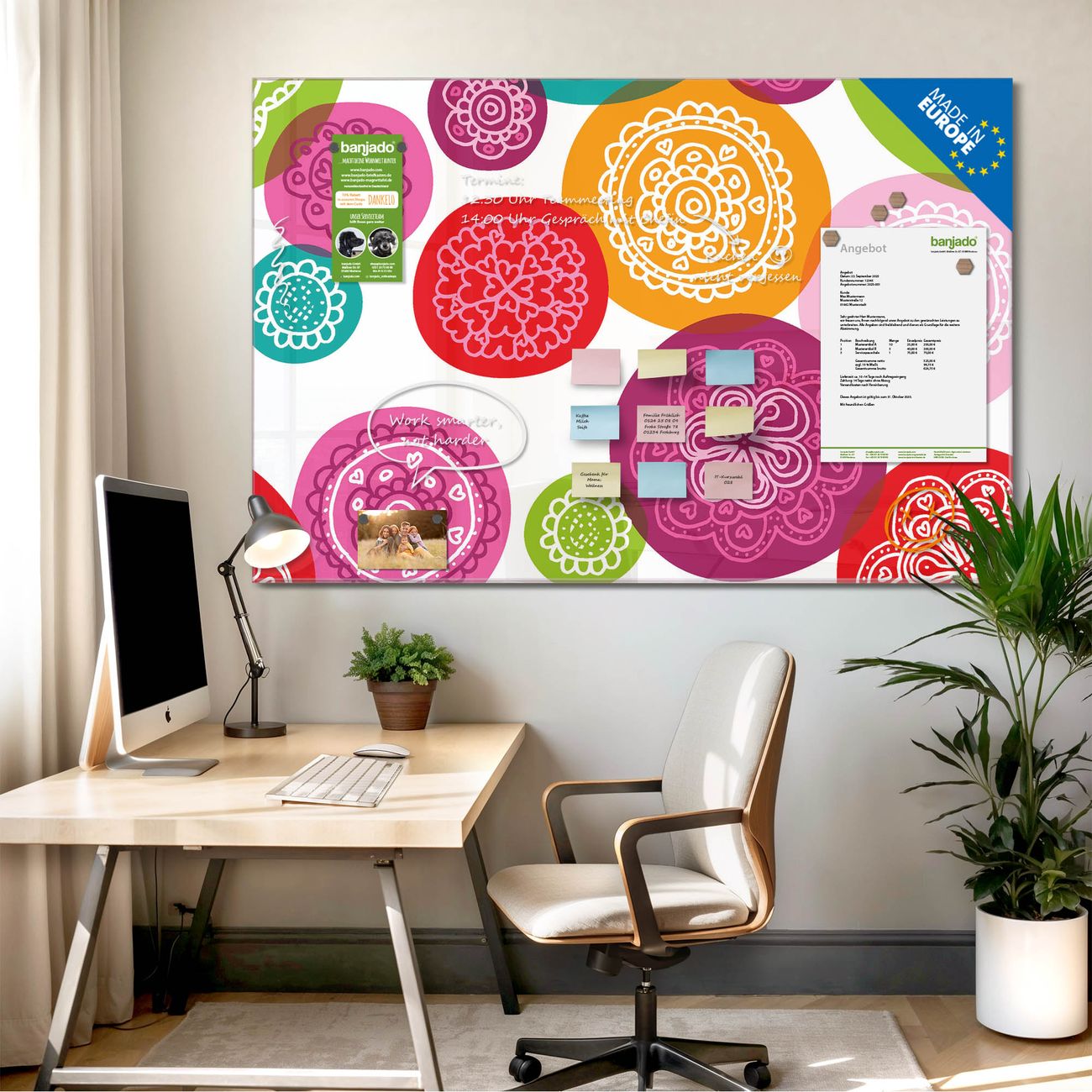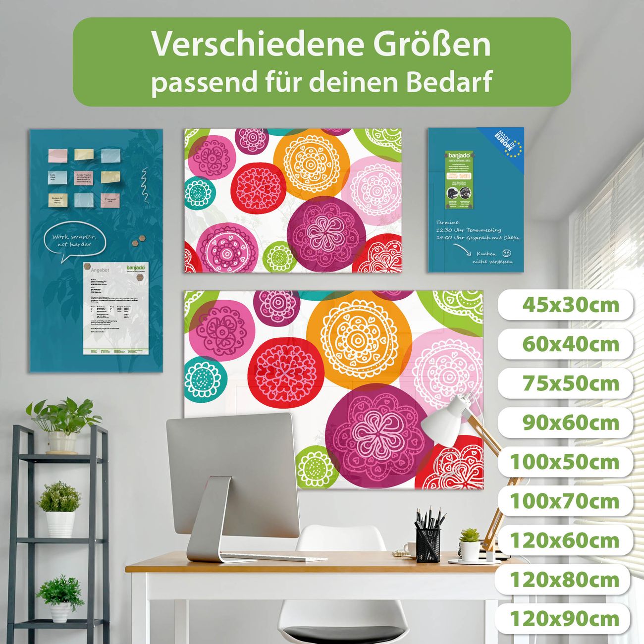 Jede Glas Magnettafel wird in unserer Werkstatt von Hand gefertigt und sorgfältig geprüft. So erhalten Sie ein echtes Qualitätsprodukt, das Funktion und Ästhetik perfekt vereint.?? Warum banjado?
