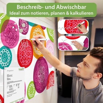 Die banjado Glas Magnettafel mit dem Motiv Motiv Naive Blüten verbindet Funktionalität mit Stil. Sie ersetzt das Zettelchaos durch klare Strukturen und bringt dabei eine warme, natürliche Atmosphäre in Ihr Zuhause. Ob im Büro, in der Küche oder im Eingangsbereich - dieses Design-Board zieht Blicke an und sorgt für Ordnung mit Charakter.