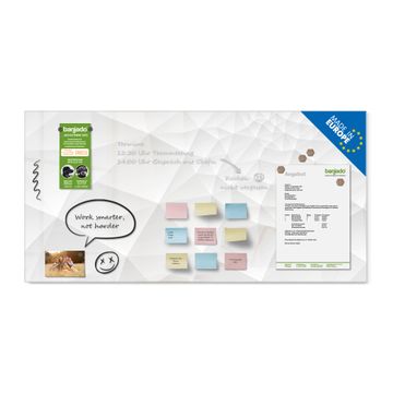 Auf der glatten Glasoberfläche lassen sich Termine, Rezepte oder Notizen ganz einfach mit Kreidestiften festhalten und rückstandslos entfernen. Starke Neodym-Magnete halten Ihre wichtigsten Erinnerungen sicher an Ort und Stelle. So entsteht Ihre ganz persönliche Ideenwand - jeden Tag neu.
