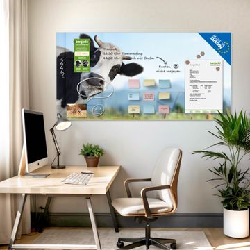 Auf der glatten Glasoberfläche lassen sich Termine, Rezepte oder Notizen ganz einfach mit Kreidestiften festhalten und rückstandslos entfernen. Starke Neodym-Magnete halten Ihre wichtigsten Erinnerungen sicher an Ort und Stelle. So entsteht Ihre ganz persönliche Ideenwand - jeden Tag neu.