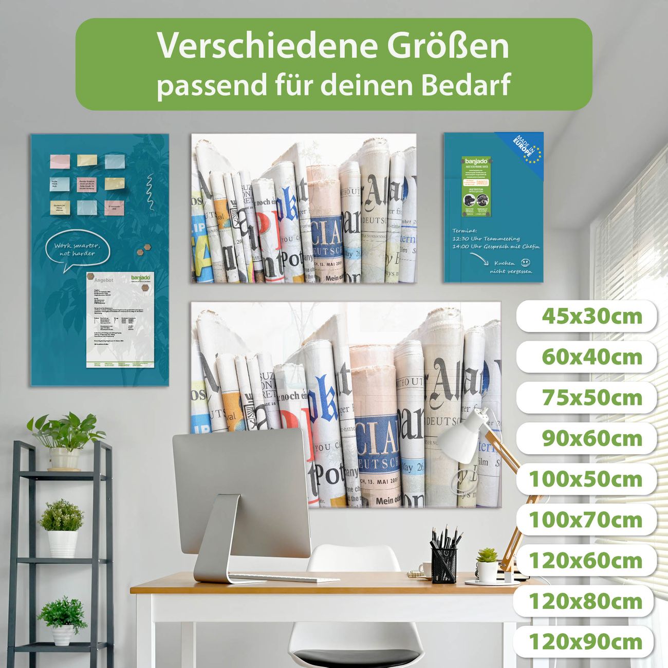 Jede Glas Magnettafel wird in unserer Werkstatt von Hand gefertigt und sorgfältig geprüft. So erhalten Sie ein echtes Qualitätsprodukt, das Funktion und Ästhetik perfekt vereint.?? Warum banjado?