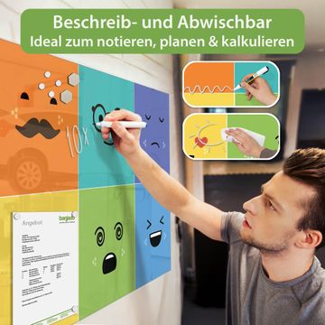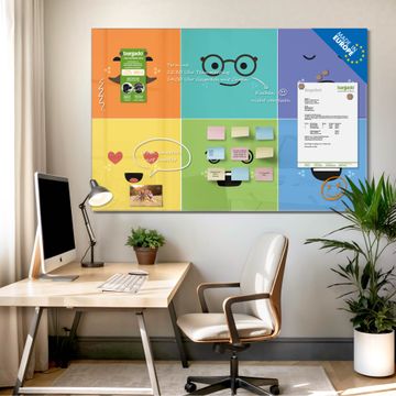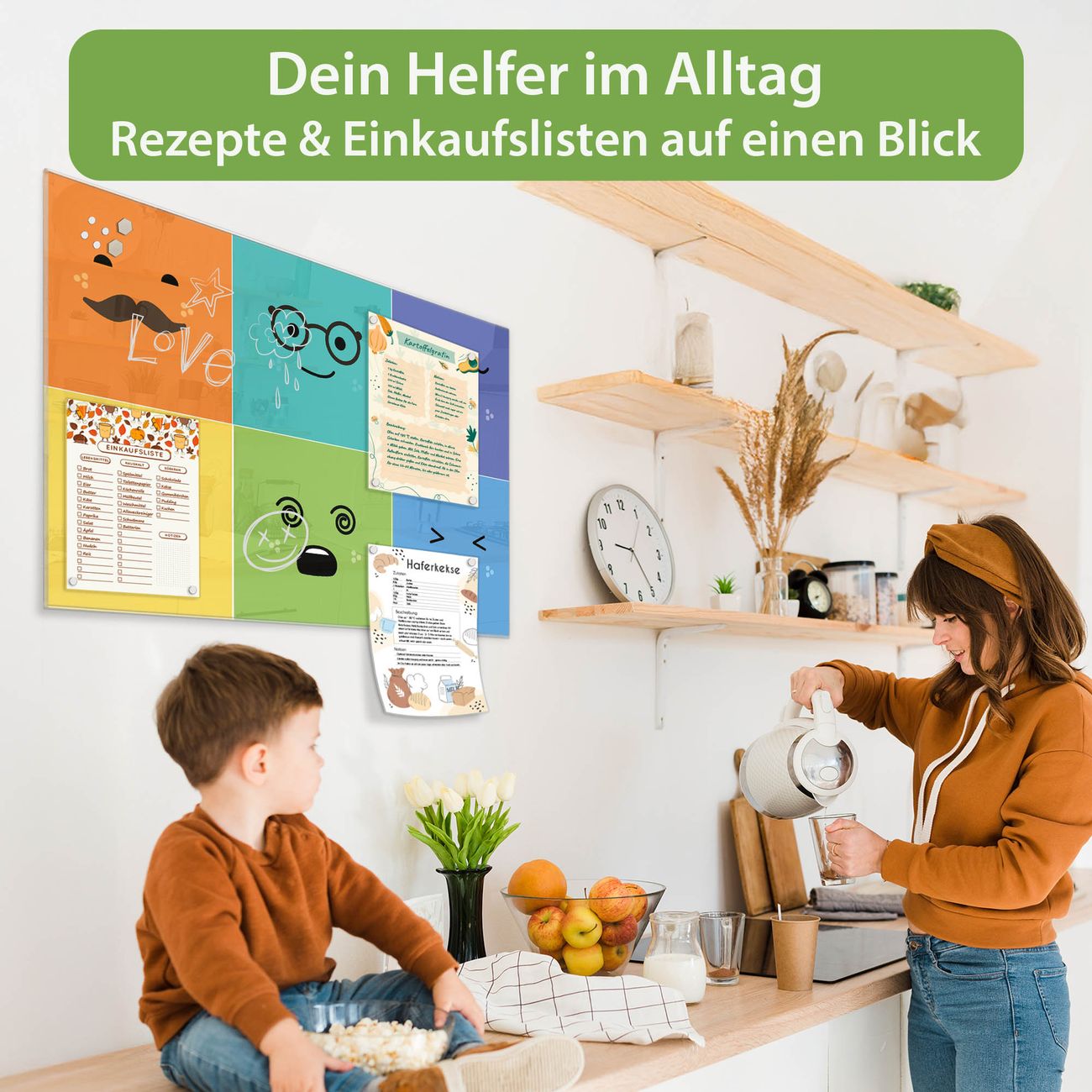 Auf der glatten Glasoberfläche lassen sich Termine, Rezepte oder Notizen ganz einfach mit Kreidestiften festhalten und rückstandslos entfernen. Starke Neodym-Magnete halten Ihre wichtigsten Erinnerungen sicher an Ort und Stelle. So entsteht Ihre ganz persönliche Ideenwand - jeden Tag neu.