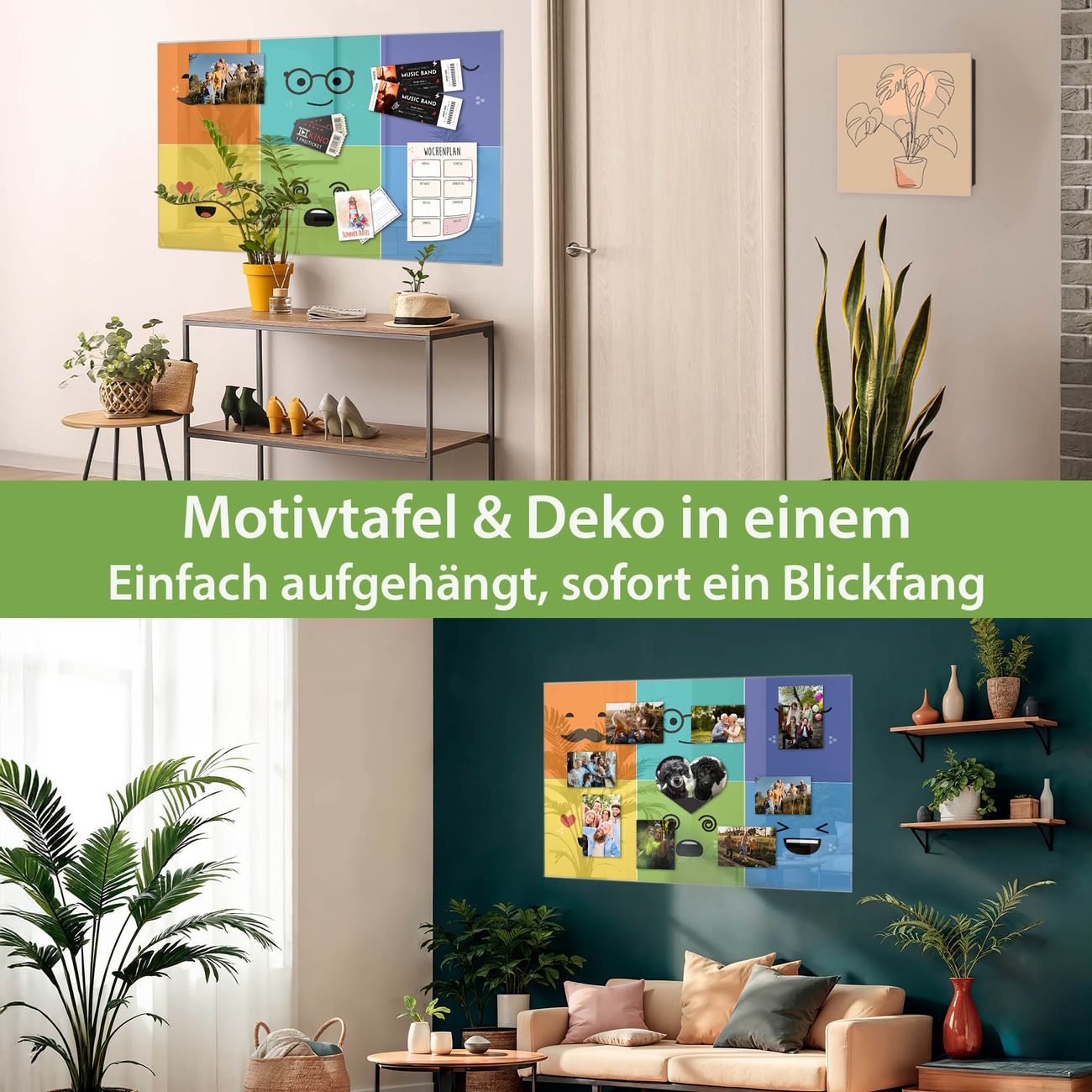 Die banjado Glas Magnettafel mit dem Motiv Motiv Neun Keinenasen verbindet Funktionalität mit Stil. Sie ersetzt das Zettelchaos durch klare Strukturen und bringt dabei eine warme, natürliche Atmosphäre in Ihr Zuhause. Ob im Büro, in der Küche oder im Eingangsbereich - dieses Design-Board zieht Blicke an und sorgt für Ordnung mit Charakter.