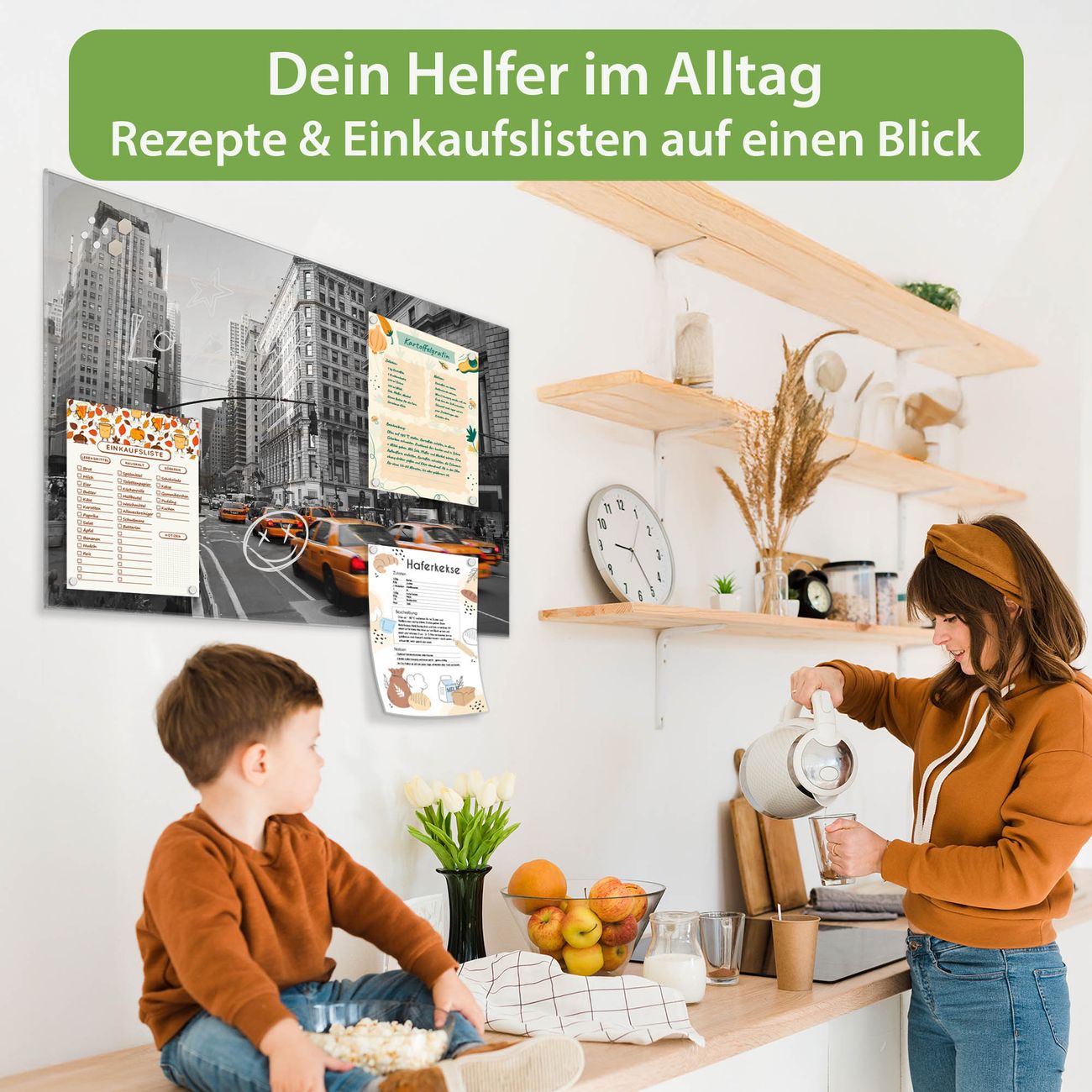 Ein Stück Design, das Ihren Alltag organisiert. Schreiben, heften, inspirieren - alles an einem Ort. Qualität, die man spürt. Montage leicht gemacht. Handwerk mit Herz - veredelt in Sachsen. Einzigartiges Design mit Motiv Motiv New York Taxi Beschreibbare Glasoberfläche, leicht zu reinigen Starke Magnetkraft durch Stahlrückwand Inklusive 4 Neodym-Magneten Flexible Montageoptionen Handveredelt in Sachsen - Qualität, die bleibt
