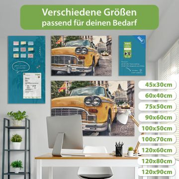 Die banjado Glas Magnettafel mit dem Motiv Motiv Yellow Cab verbindet Funktionalität mit Stil. Sie ersetzt das Zettelchaos durch klare Strukturen und bringt dabei eine warme, natürliche Atmosphäre in Ihr Zuhause. Ob im Büro, in der Küche oder im Eingangsbereich - dieses Design-Board zieht Blicke an und sorgt für Ordnung mit Charakter.