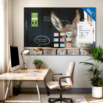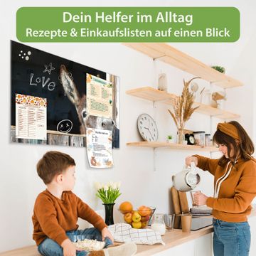 Auf der glatten Glasoberfläche lassen sich Termine, Rezepte oder Notizen ganz einfach mit Kreidestiften festhalten und rückstandslos entfernen. Starke Neodym-Magnete halten Ihre wichtigsten Erinnerungen sicher an Ort und Stelle. So entsteht Ihre ganz persönliche Ideenwand - jeden Tag neu.