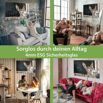 - Material: 4mm Sicherheitsglas mit Metallrückwand