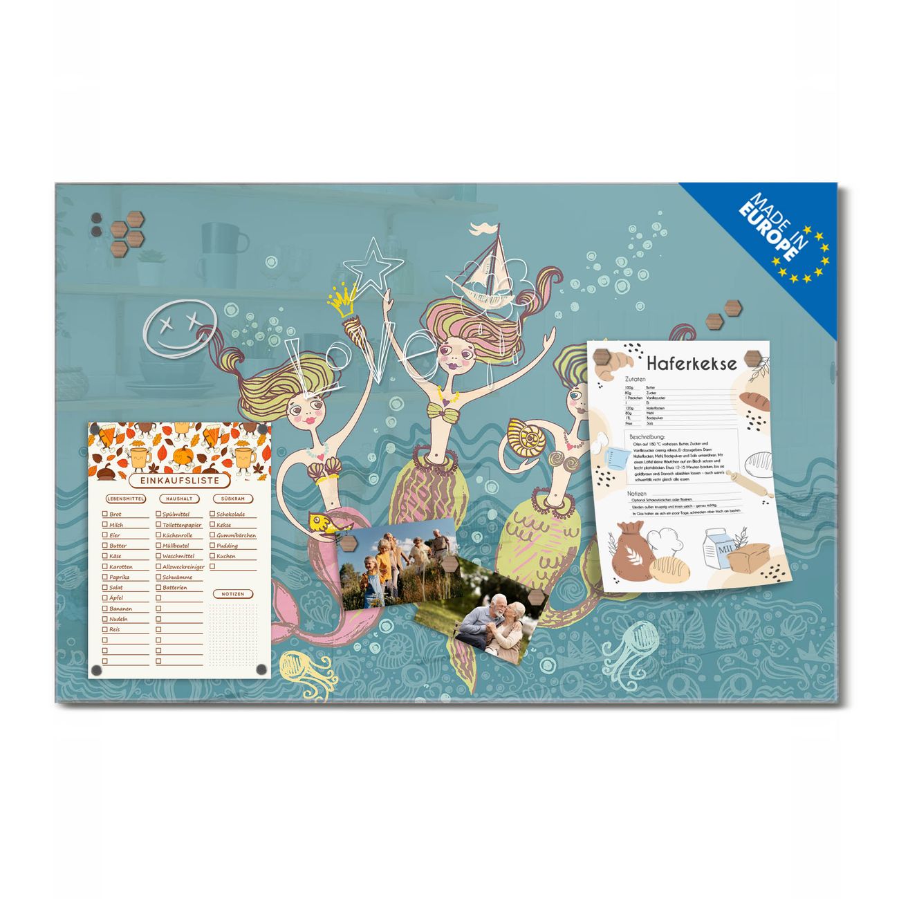 Ein Stück Design, das Ihren Alltag organisiert. Schreiben, heften, inspirieren - alles an einem Ort. Qualität, die man spürt. Montage leicht gemacht. Handwerk mit Herz - veredelt in Sachsen. Einzigartiges Design mit Motiv Motiv Nixen Beschreibbare Glasoberfläche, leicht zu reinigen Starke Magnetkraft durch Stahlrückwand Inklusive 4 Neodym-Magneten Flexible Montageoptionen Handveredelt in Sachsen - Qualität, die bleibt