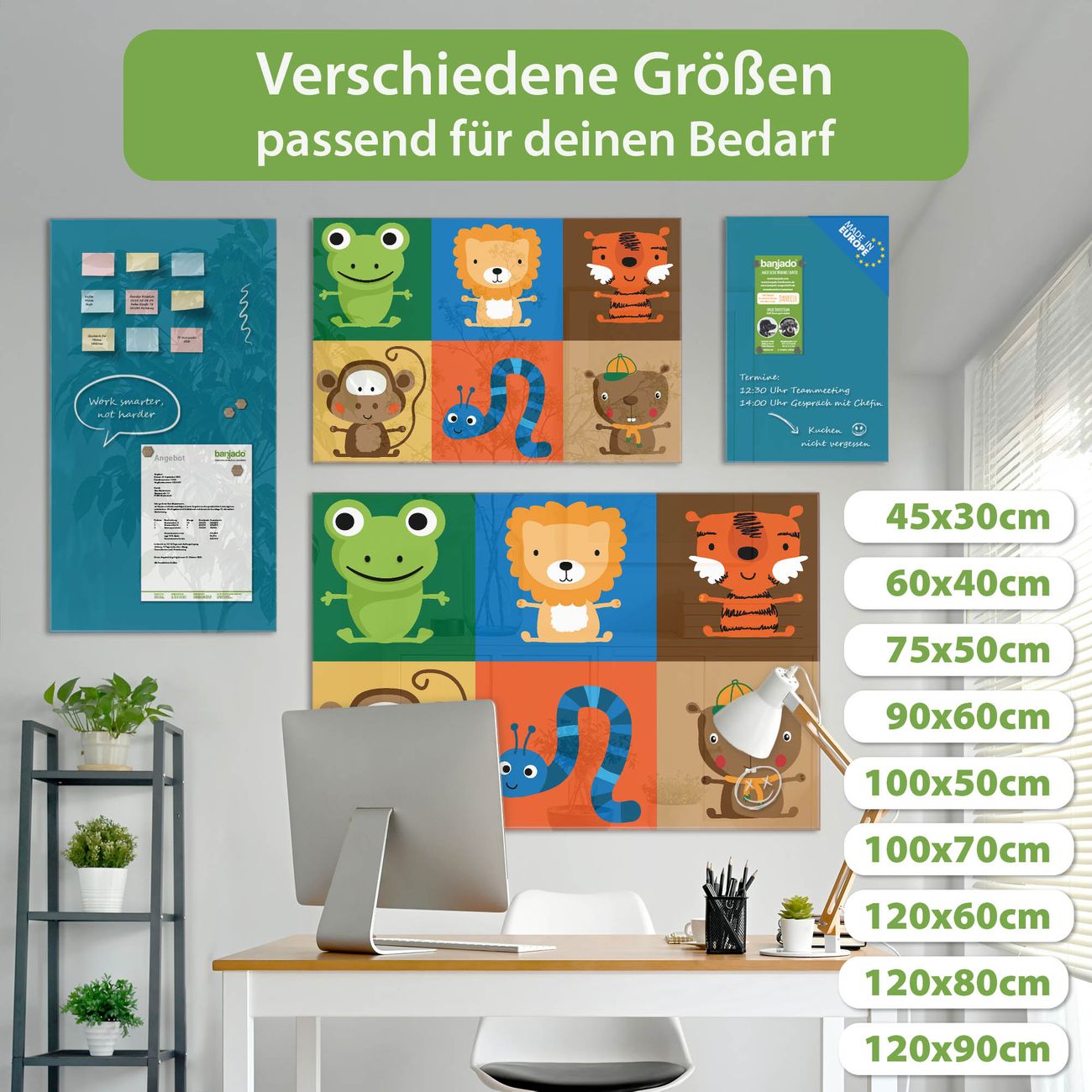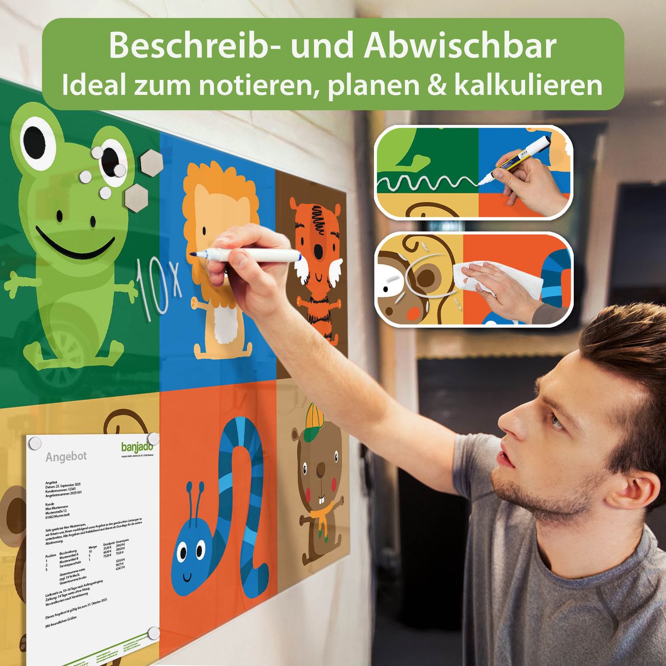 Jede Glas Magnettafel wird in unserer Werkstatt von Hand gefertigt und sorgfältig geprüft. So erhalten Sie ein echtes Qualitätsprodukt, das Funktion und Ästhetik perfekt vereint.?? Warum banjado?