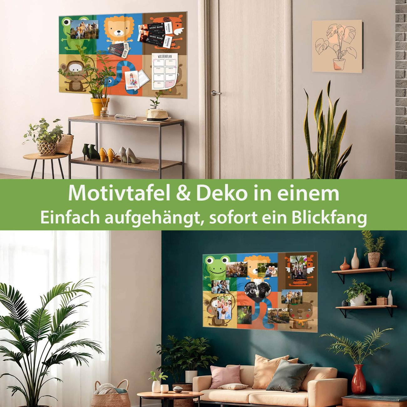 Dank der flachen Bauweise wirkt die Magnetwand fast schwebend an der Wand. Sie können sie mit Montagekleber elegant befestigen oder mit einem passenden Set klassisch verschrauben - beides sorgt für sicheren Halt und eine dezente Optik.