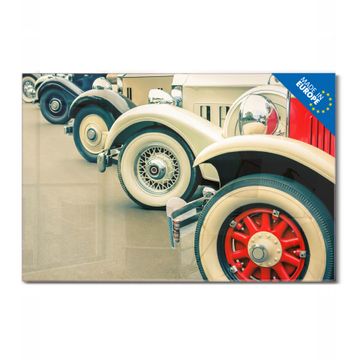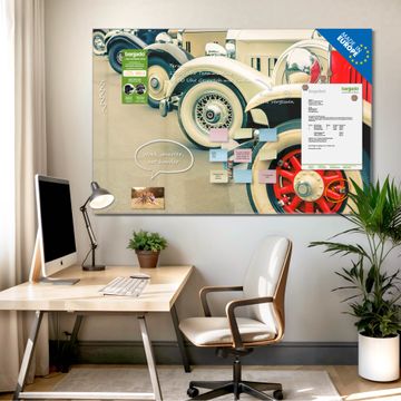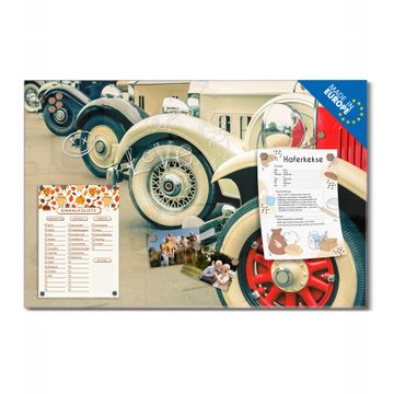 Glas Magnettafel im Querformat Motiv Oldtimer Räder
