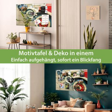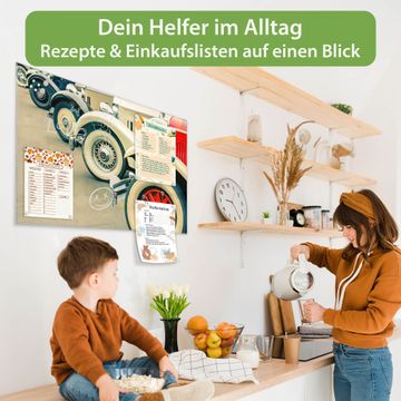 Die banjado Glas Magnettafel mit dem Motiv Motiv Oldtimer Räder verbindet Funktionalität mit Stil. Sie ersetzt das Zettelchaos durch klare Strukturen und bringt dabei eine warme, natürliche Atmosphäre in Ihr Zuhause. Ob im Büro, in der Küche oder im Eingangsbereich - dieses Design-Board zieht Blicke an und sorgt für Ordnung mit Charakter.
