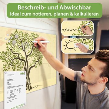 Die banjado Glas Magnettafel mit dem Motiv Motiv Olivenbaum verbindet Funktionalität mit Stil. Sie ersetzt das Zettelchaos durch klare Strukturen und bringt dabei eine warme, natürliche Atmosphäre in Ihr Zuhause. Ob im Büro, in der Küche oder im Eingangsbereich - dieses Design-Board zieht Blicke an und sorgt für Ordnung mit Charakter.