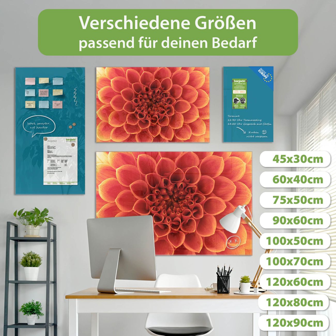 Jede Glas Magnettafel wird in unserer Werkstatt von Hand gefertigt und sorgfältig geprüft. So erhalten Sie ein echtes Qualitätsprodukt, das Funktion und Ästhetik perfekt vereint.?? Warum banjado?