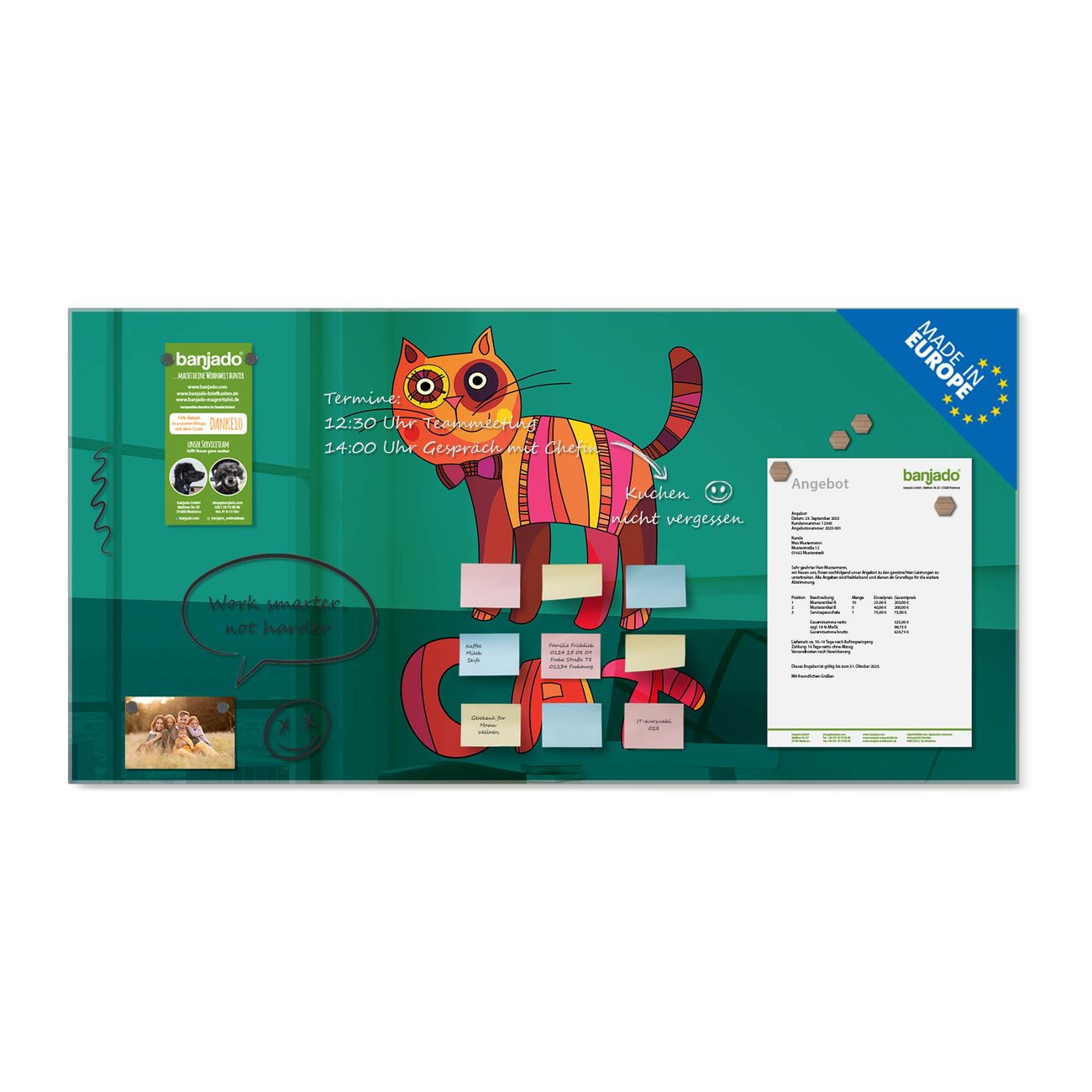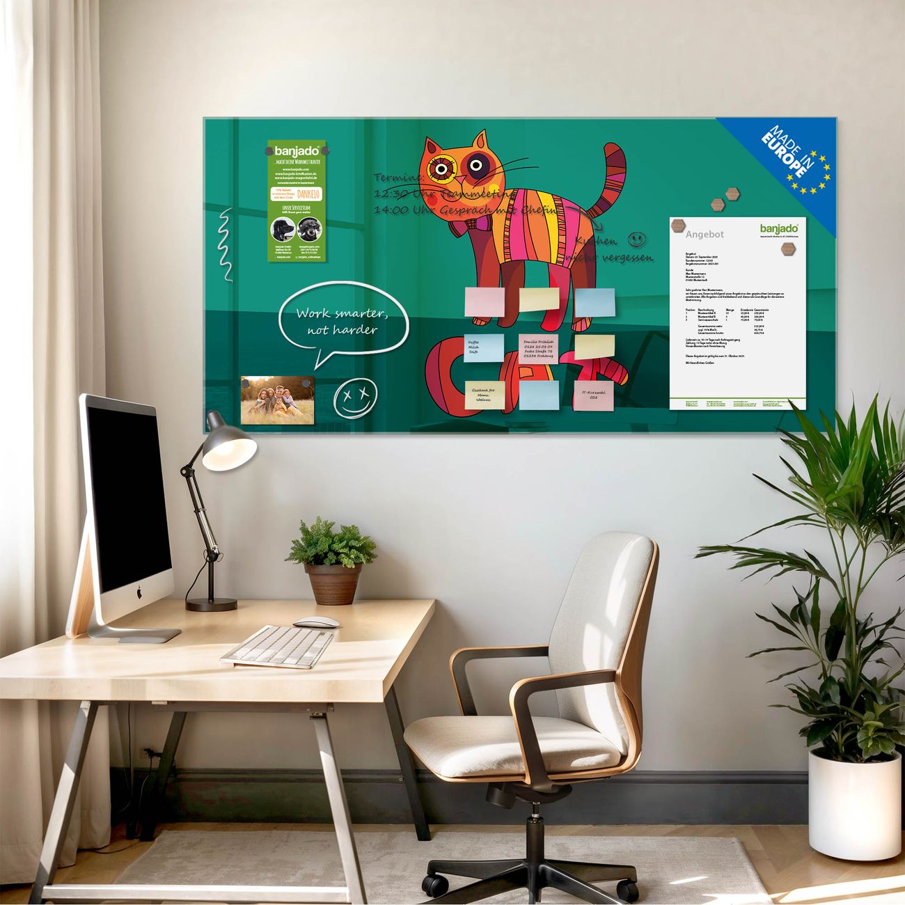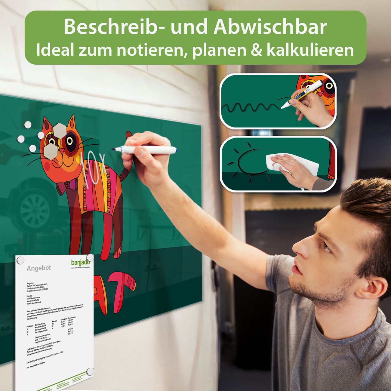 Die banjado Glas Magnettafel mit dem Motiv Motiv Orange Katze verbindet Funktionalität mit Stil. Sie ersetzt das Zettelchaos durch klare Strukturen und bringt dabei eine warme, natürliche Atmosphäre in Ihr Zuhause. Ob im Büro, in der Küche oder im Eingangsbereich - dieses Design-Board zieht Blicke an und sorgt für Ordnung mit Charakter.