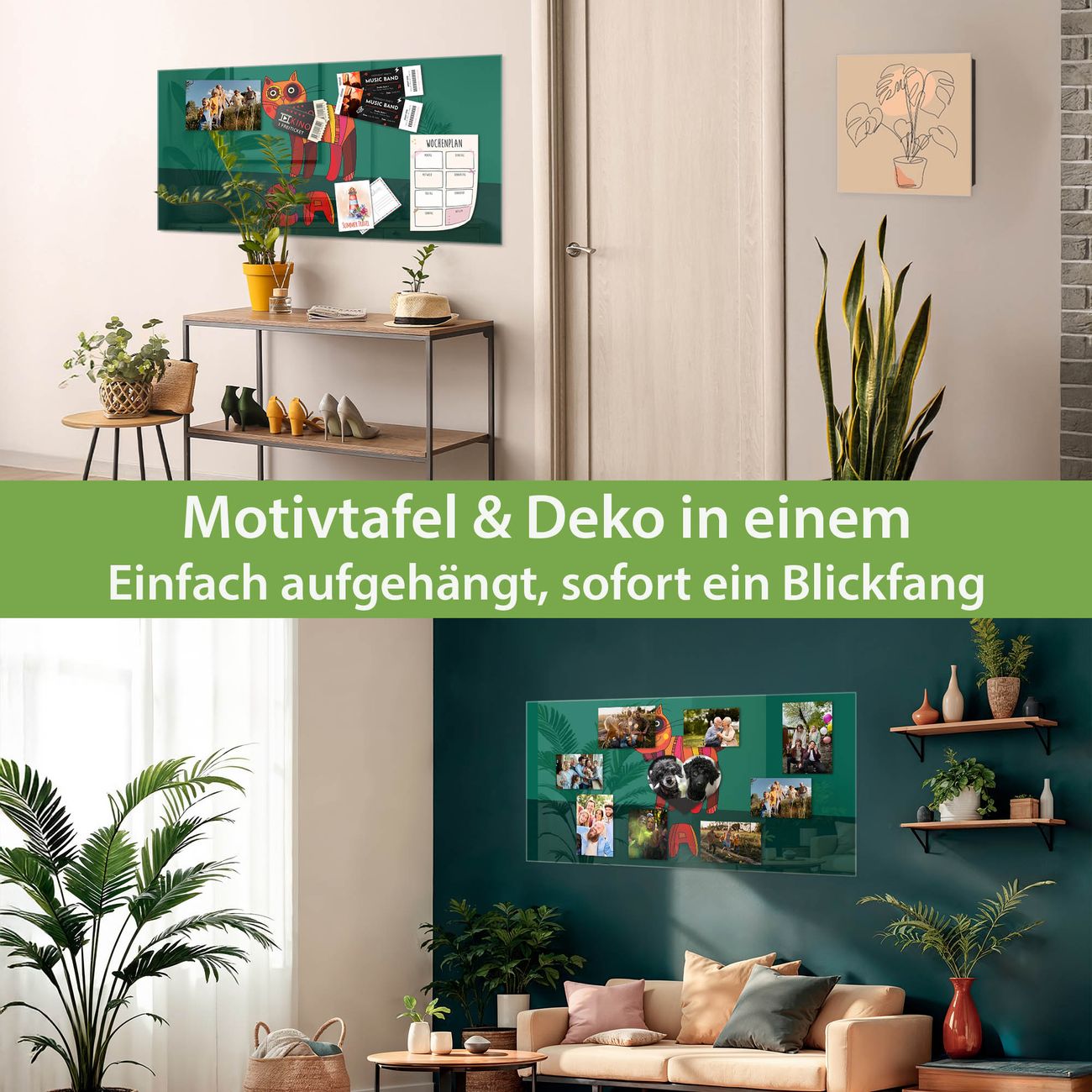 Auf der glatten Glasoberfläche lassen sich Termine, Rezepte oder Notizen ganz einfach mit Kreidestiften festhalten und rückstandslos entfernen. Starke Neodym-Magnete halten Ihre wichtigsten Erinnerungen sicher an Ort und Stelle. So entsteht Ihre ganz persönliche Ideenwand - jeden Tag neu.