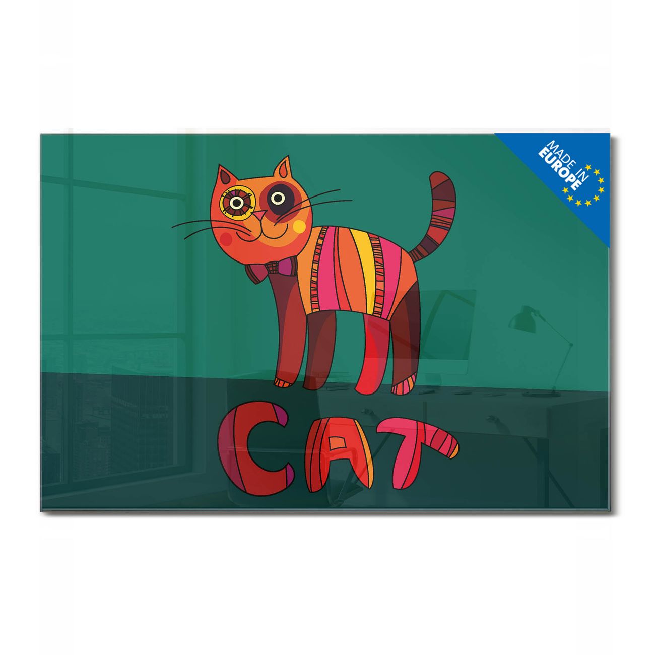 Glas Magnettafel im Querformat Motiv Orange Katze