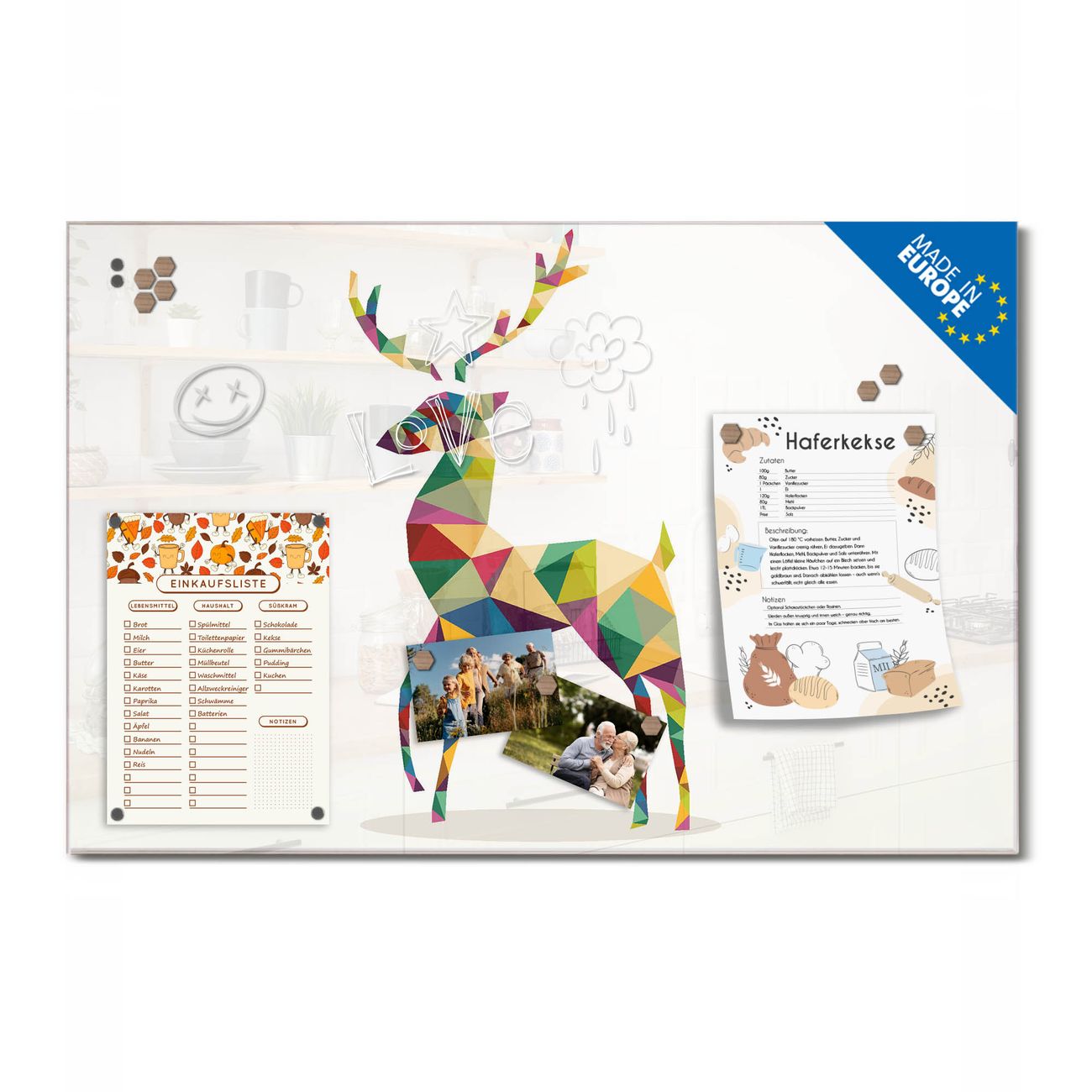 Glas Magnettafel im Querformat Motiv Origami Hirsch