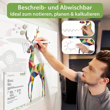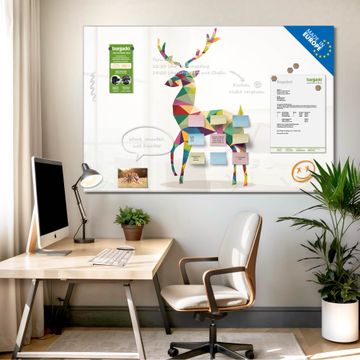 Die banjado Glas Magnettafel mit dem Motiv Motiv Origami Hirsch verbindet Funktionalität mit Stil. Sie ersetzt das Zettelchaos durch klare Strukturen und bringt dabei eine warme, natürliche Atmosphäre in Ihr Zuhause. Ob im Büro, in der Küche oder im Eingangsbereich - dieses Design-Board zieht Blicke an und sorgt für Ordnung mit Charakter.