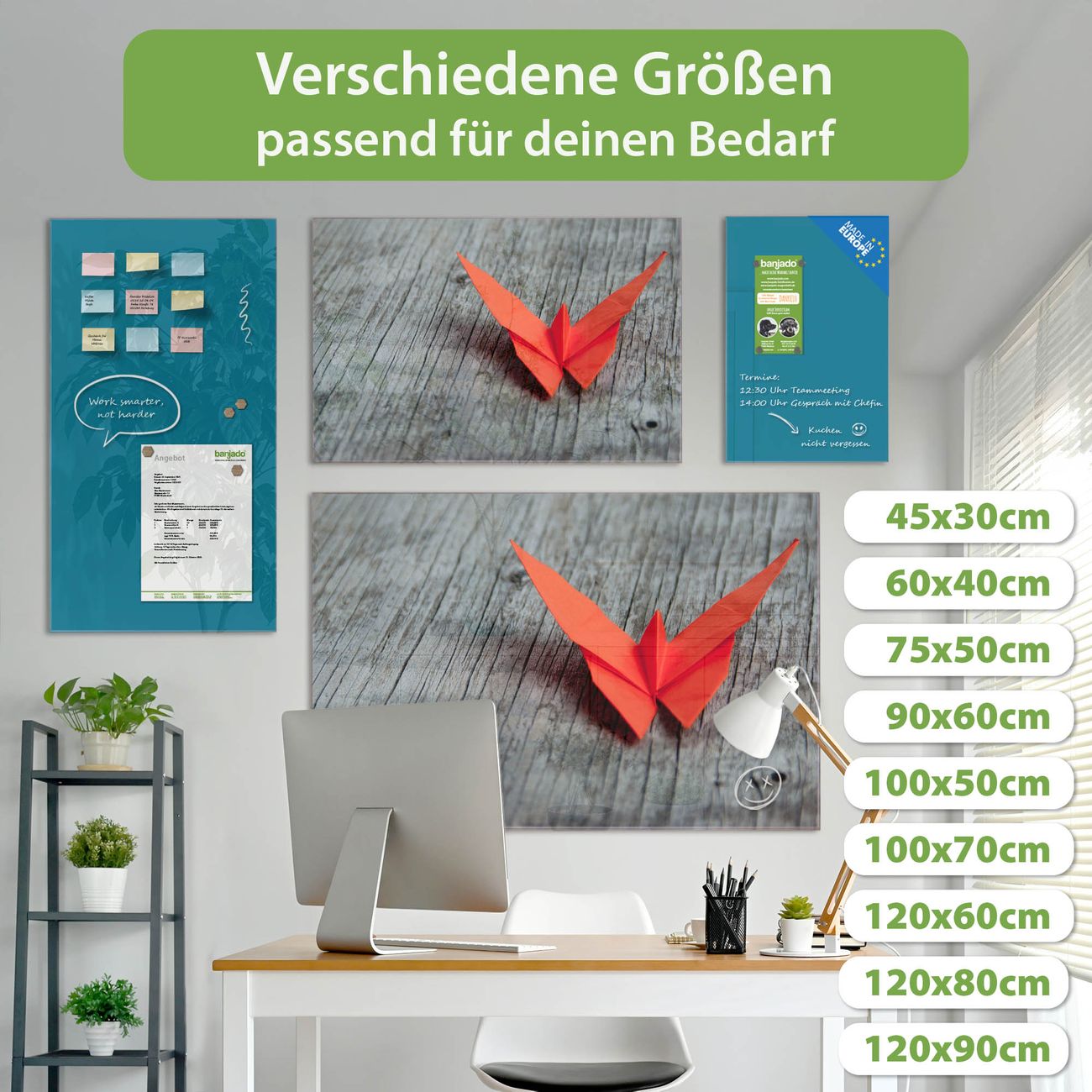 Die banjado Glas Magnettafel mit dem Motiv Motiv Origami Schmetterling verbindet Funktionalität mit Stil. Sie ersetzt das Zettelchaos durch klare Strukturen und bringt dabei eine warme, natürliche Atmosphäre in Ihr Zuhause. Ob im Büro, in der Küche oder im Eingangsbereich - dieses Design-Board zieht Blicke an und sorgt für Ordnung mit Charakter.