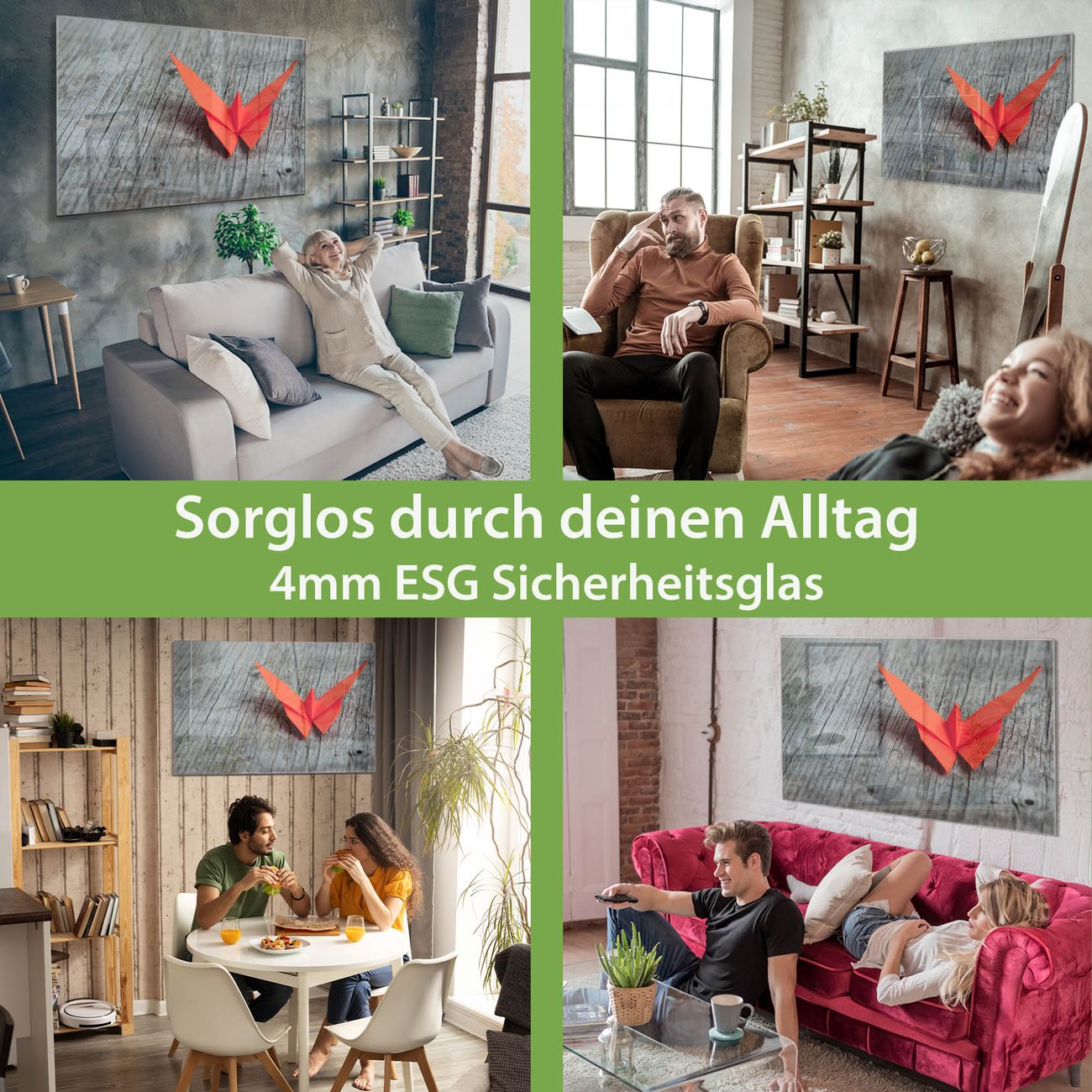 - Material: 4mm Sicherheitsglas mit Metallrückwand