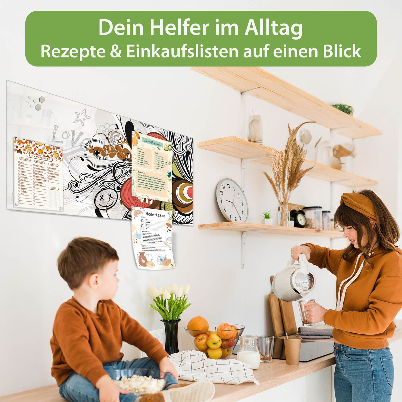 Auf der glatten Glasoberfläche lassen sich Termine, Rezepte oder Notizen ganz einfach mit Kreidestiften festhalten und rückstandslos entfernen. Starke Neodym-Magnete halten Ihre wichtigsten Erinnerungen sicher an Ort und Stelle. So entsteht Ihre ganz persönliche Ideenwand - jeden Tag neu.