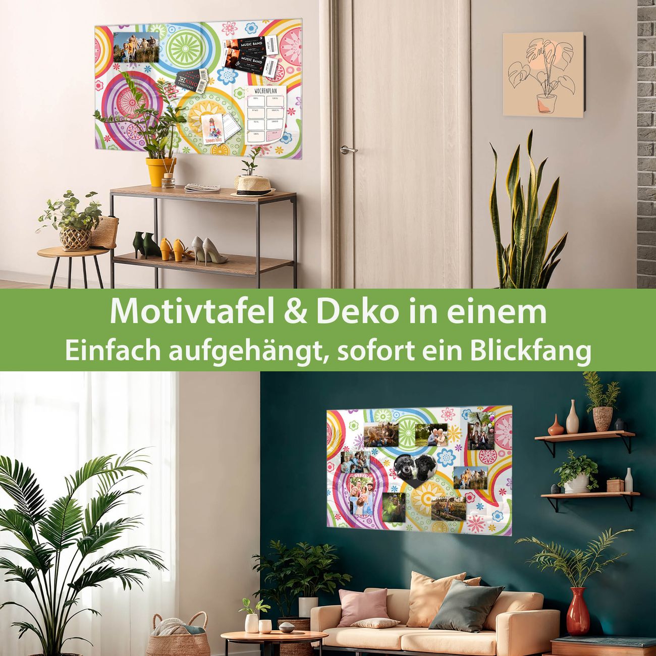 Dank der flachen Bauweise wirkt die Magnetwand fast schwebend an der Wand. Sie können sie mit Montagekleber elegant befestigen oder mit einem passenden Set klassisch verschrauben - beides sorgt für sicheren Halt und eine dezente Optik.