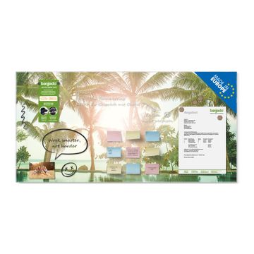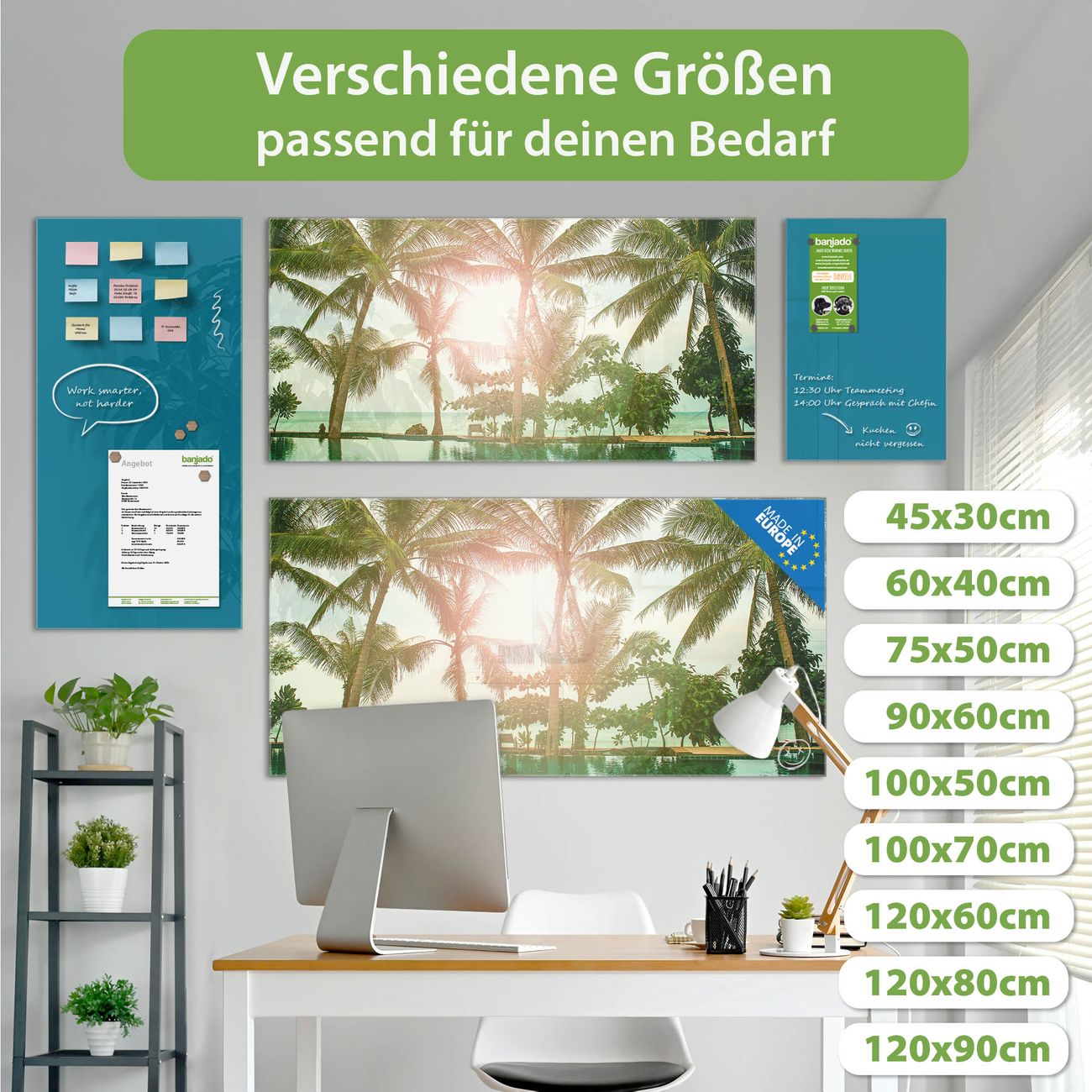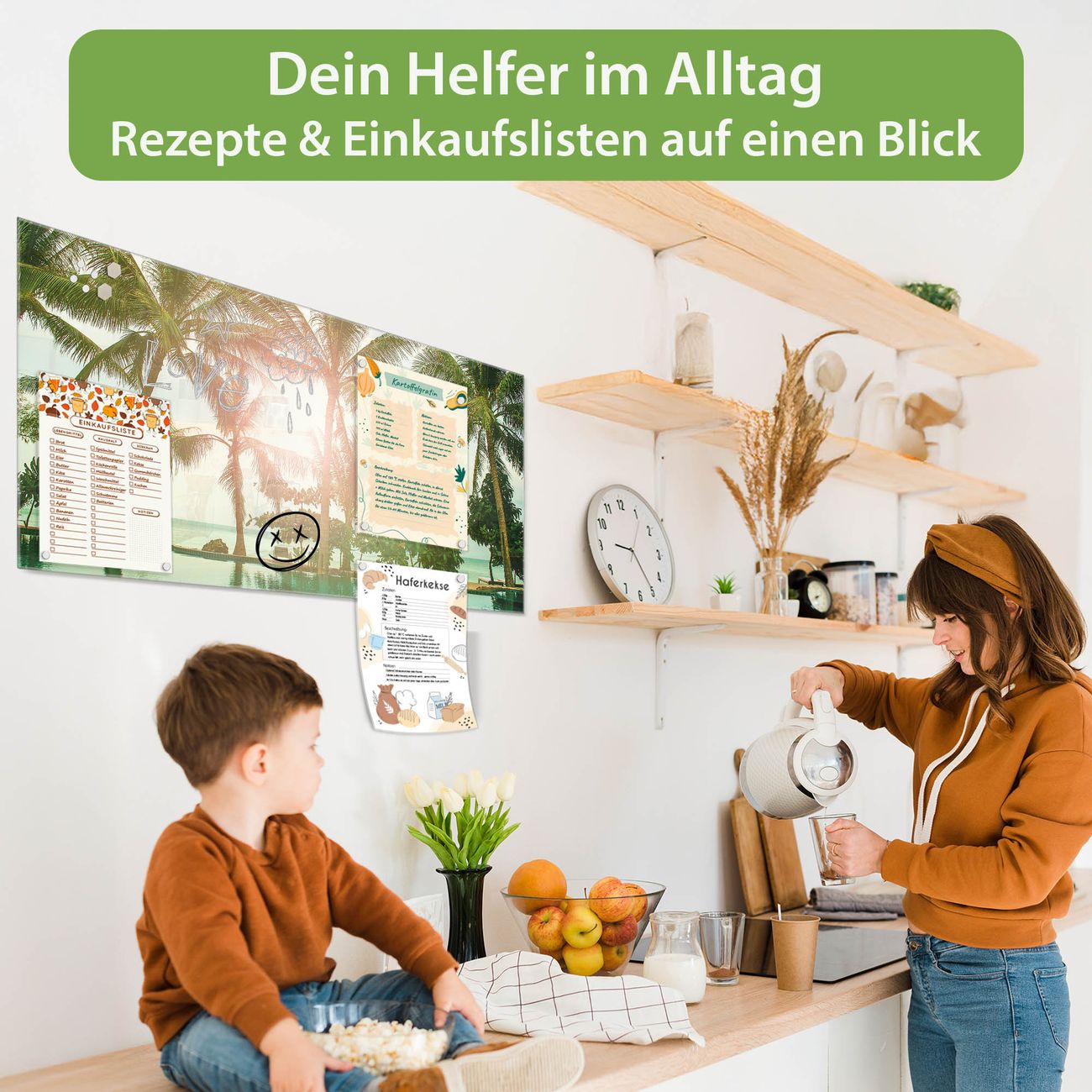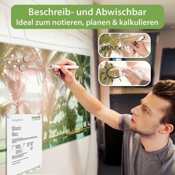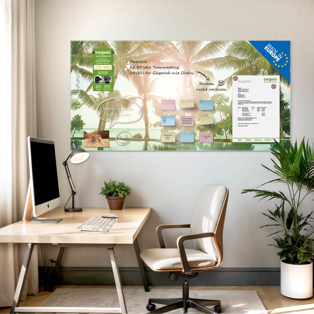 Die banjado Glas Magnettafel mit dem Motiv Motiv Palmen verbindet Funktionalität mit Stil. Sie ersetzt das Zettelchaos durch klare Strukturen und bringt dabei eine warme, natürliche Atmosphäre in Ihr Zuhause. Ob im Büro, in der Küche oder im Eingangsbereich - dieses Design-Board zieht Blicke an und sorgt für Ordnung mit Charakter.