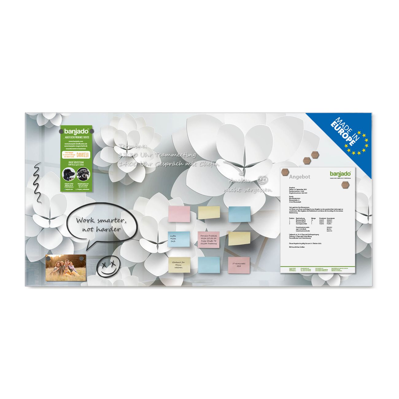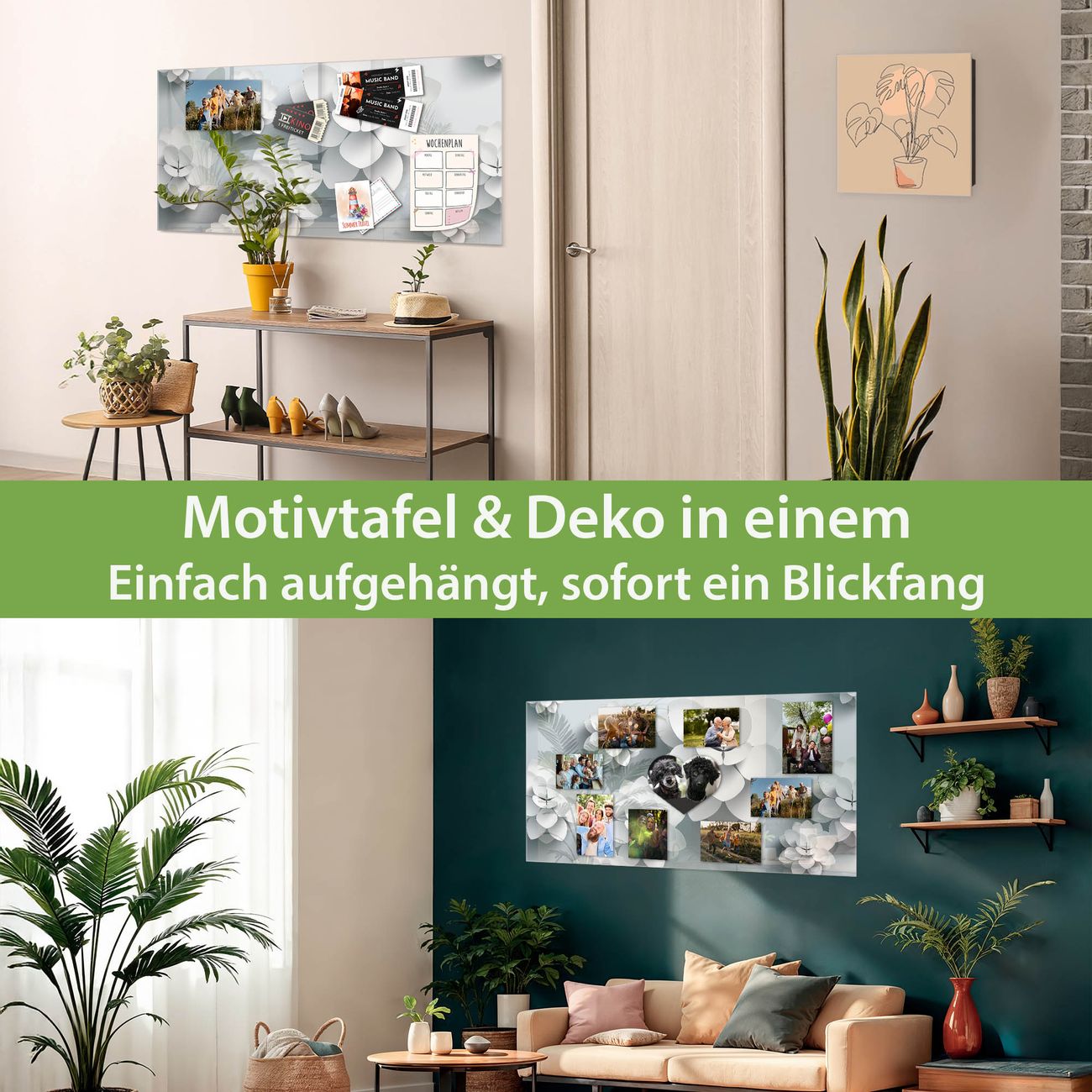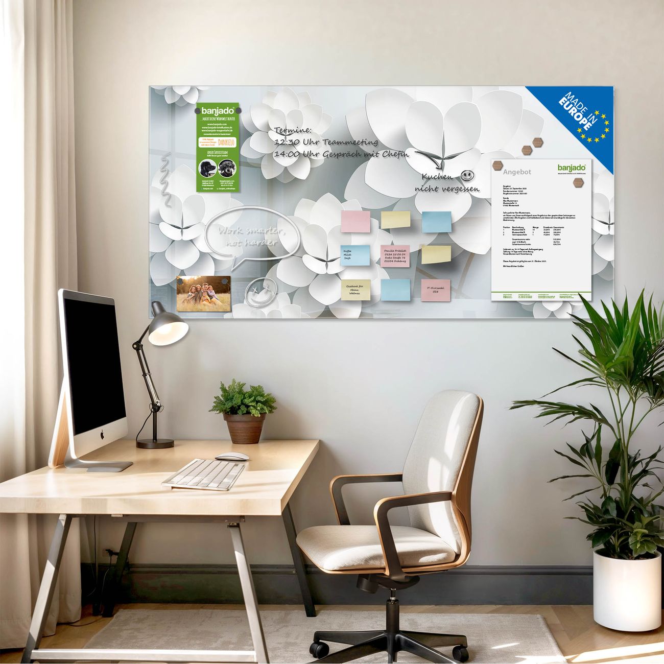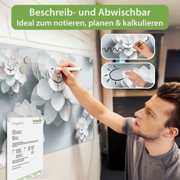 Die banjado Glas Magnettafel mit dem Motiv Motiv Papier Lotus verbindet Funktionalität mit Stil. Sie ersetzt das Zettelchaos durch klare Strukturen und bringt dabei eine warme, natürliche Atmosphäre in Ihr Zuhause. Ob im Büro, in der Küche oder im Eingangsbereich - dieses Design-Board zieht Blicke an und sorgt für Ordnung mit Charakter.
