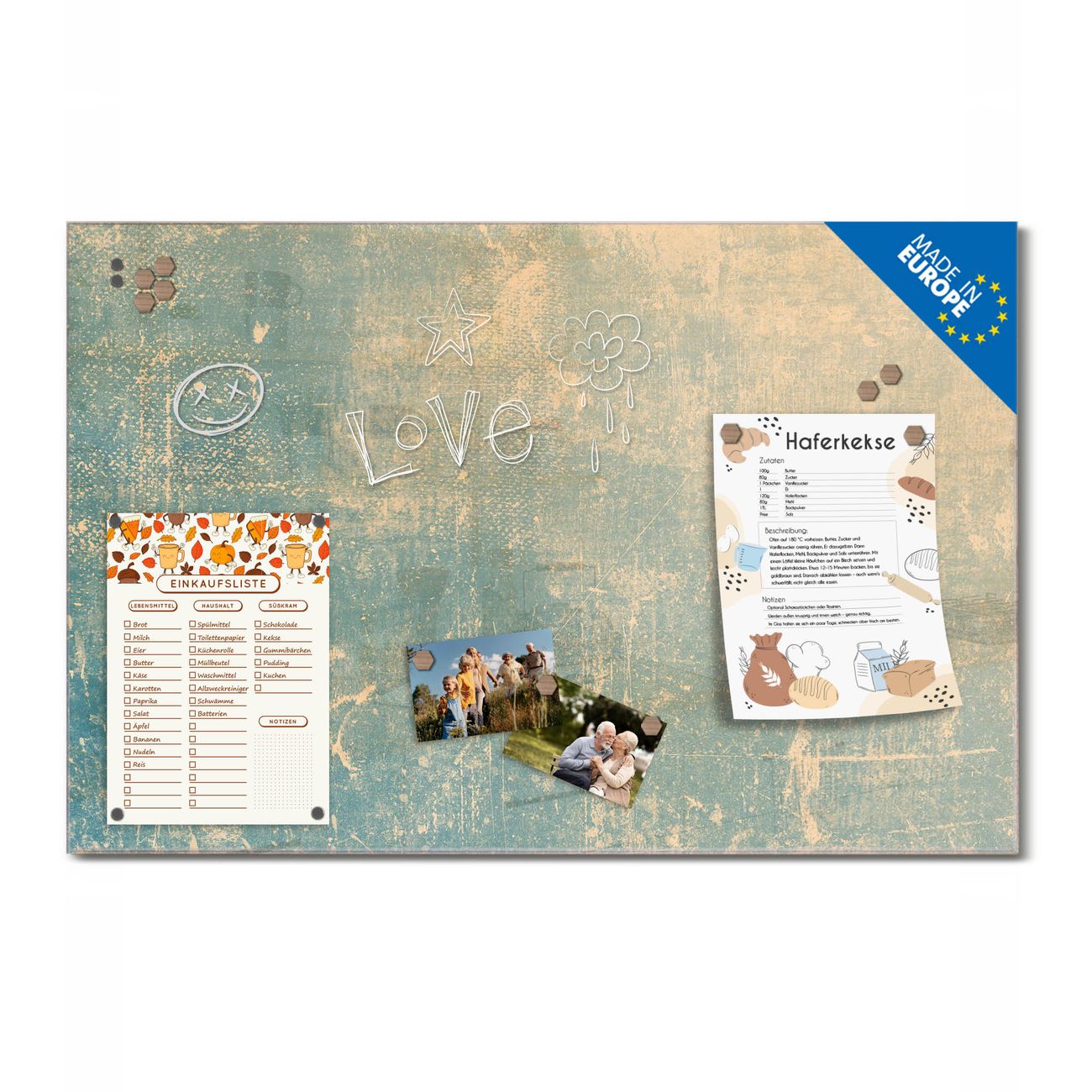 Ein Stück Design, das Ihren Alltag organisiert. Schreiben, heften, inspirieren - alles an einem Ort. Qualität, die man spürt. Montage leicht gemacht. Handwerk mit Herz - veredelt in Sachsen. Einzigartiges Design mit Motiv Motiv Patina Grün Beschreibbare Glasoberfläche, leicht zu reinigen Starke Magnetkraft durch Stahlrückwand Inklusive 4 Neodym-Magneten Flexible Montageoptionen Handveredelt in Sachsen - Qualität, die bleibt