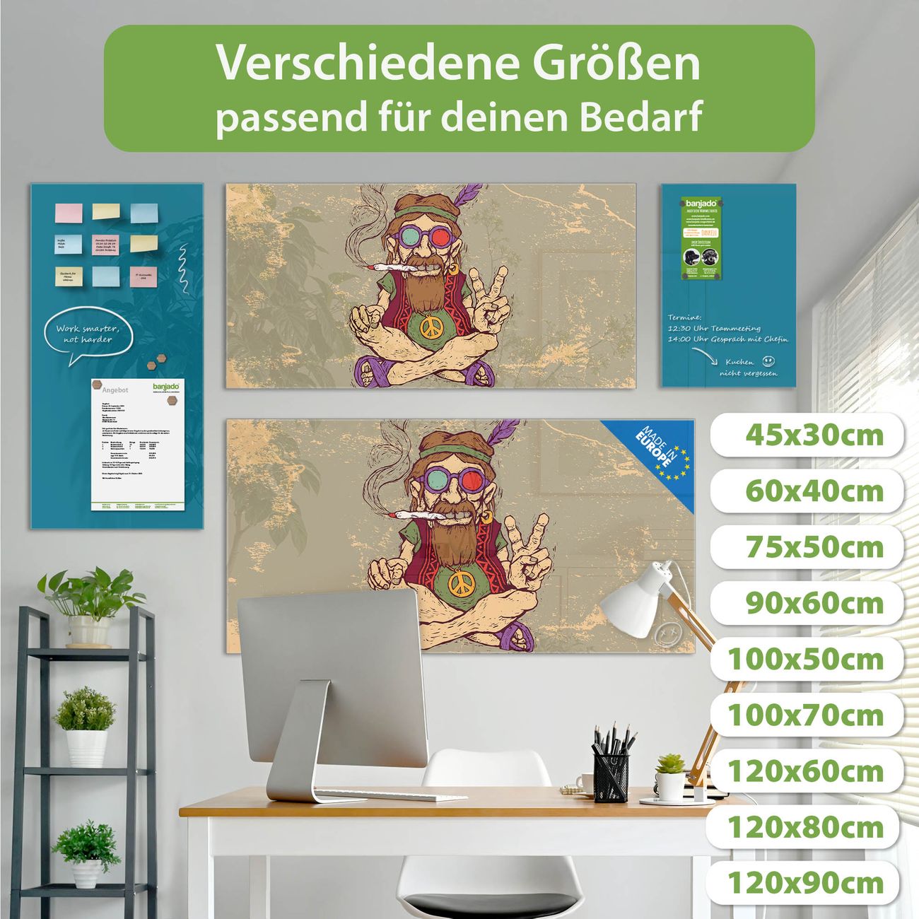 Jede Glas Magnettafel wird in unserer Werkstatt von Hand gefertigt und sorgfältig geprüft. So erhalten Sie ein echtes Qualitätsprodukt, das Funktion und Ästhetik perfekt vereint.?? Warum banjado?