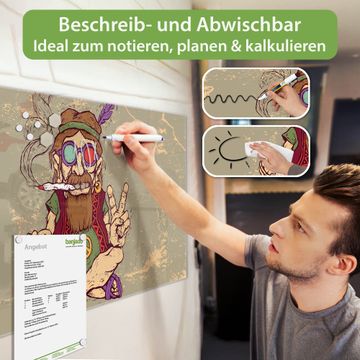 Die banjado Glas Magnettafel mit dem Motiv Motiv Peace verbindet Funktionalität mit Stil. Sie ersetzt das Zettelchaos durch klare Strukturen und bringt dabei eine warme, natürliche Atmosphäre in Ihr Zuhause. Ob im Büro, in der Küche oder im Eingangsbereich - dieses Design-Board zieht Blicke an und sorgt für Ordnung mit Charakter.
