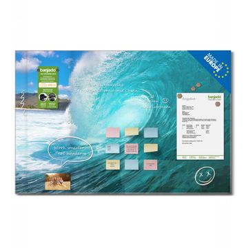 Die banjado Glas Magnettafel mit dem Motiv Motiv Perfekte Welle verbindet Funktionalität mit Stil. Sie ersetzt das Zettelchaos durch klare Strukturen und bringt dabei eine warme, natürliche Atmosphäre in Ihr Zuhause. Ob im Büro, in der Küche oder im Eingangsbereich - dieses Design-Board zieht Blicke an und sorgt für Ordnung mit Charakter.