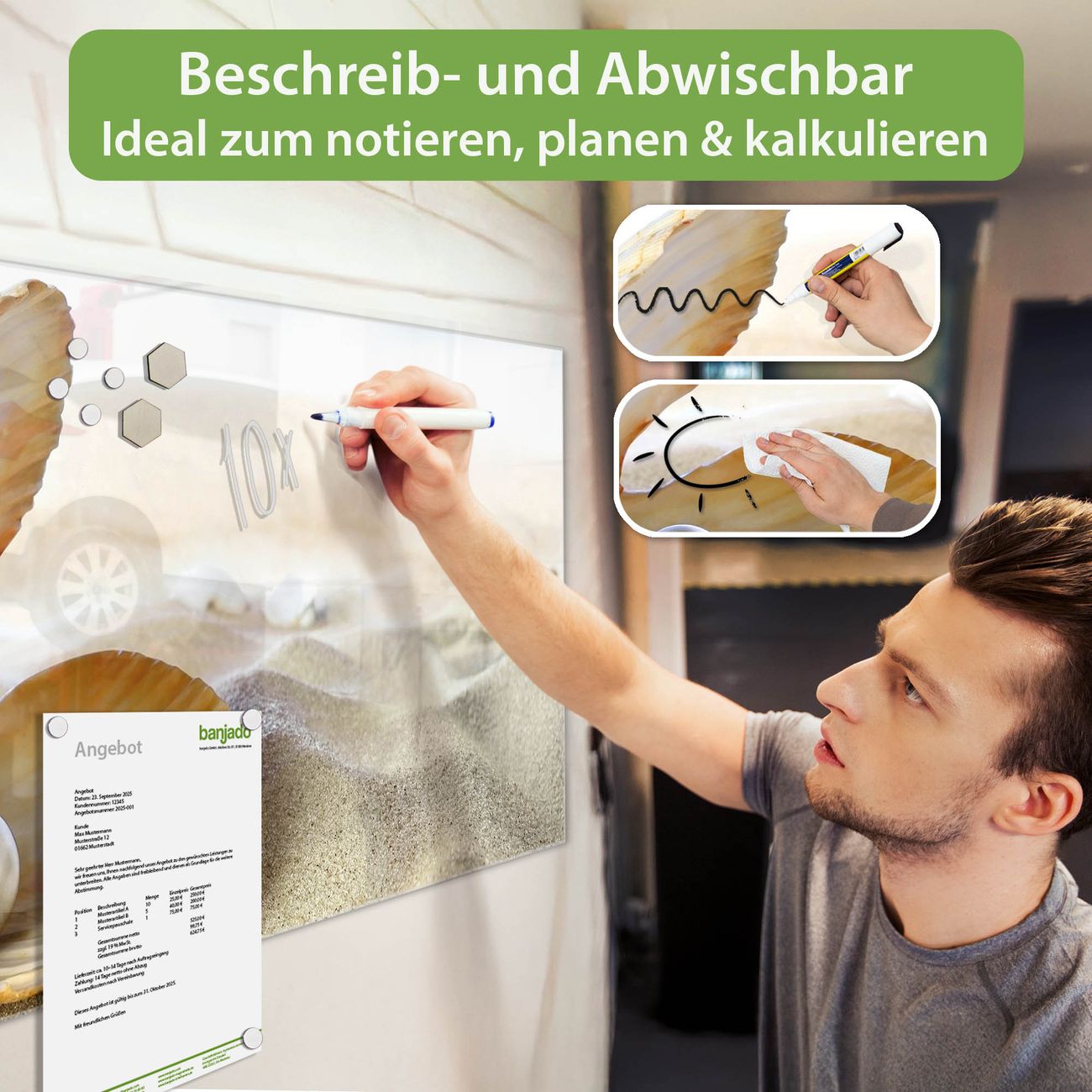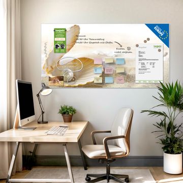 Die banjado Glas Magnettafel mit dem Motiv Motiv Perlenmuschel verbindet Funktionalität mit Stil. Sie ersetzt das Zettelchaos durch klare Strukturen und bringt dabei eine warme, natürliche Atmosphäre in Ihr Zuhause. Ob im Büro, in der Küche oder im Eingangsbereich - dieses Design-Board zieht Blicke an und sorgt für Ordnung mit Charakter.