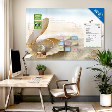 Die banjado Glas Magnettafel mit dem Motiv Motiv Perlenmuschel verbindet Funktionalität mit Stil. Sie ersetzt das Zettelchaos durch klare Strukturen und bringt dabei eine warme, natürliche Atmosphäre in Ihr Zuhause. Ob im Büro, in der Küche oder im Eingangsbereich - dieses Design-Board zieht Blicke an und sorgt für Ordnung mit Charakter.