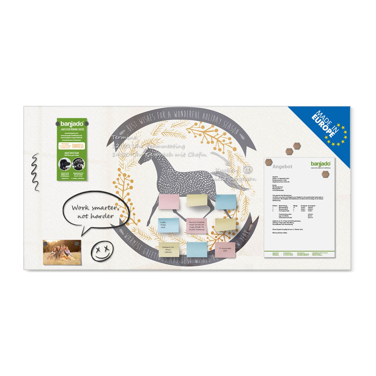 Glas Magnettafel im Querformat Motiv Pferd und Vogel