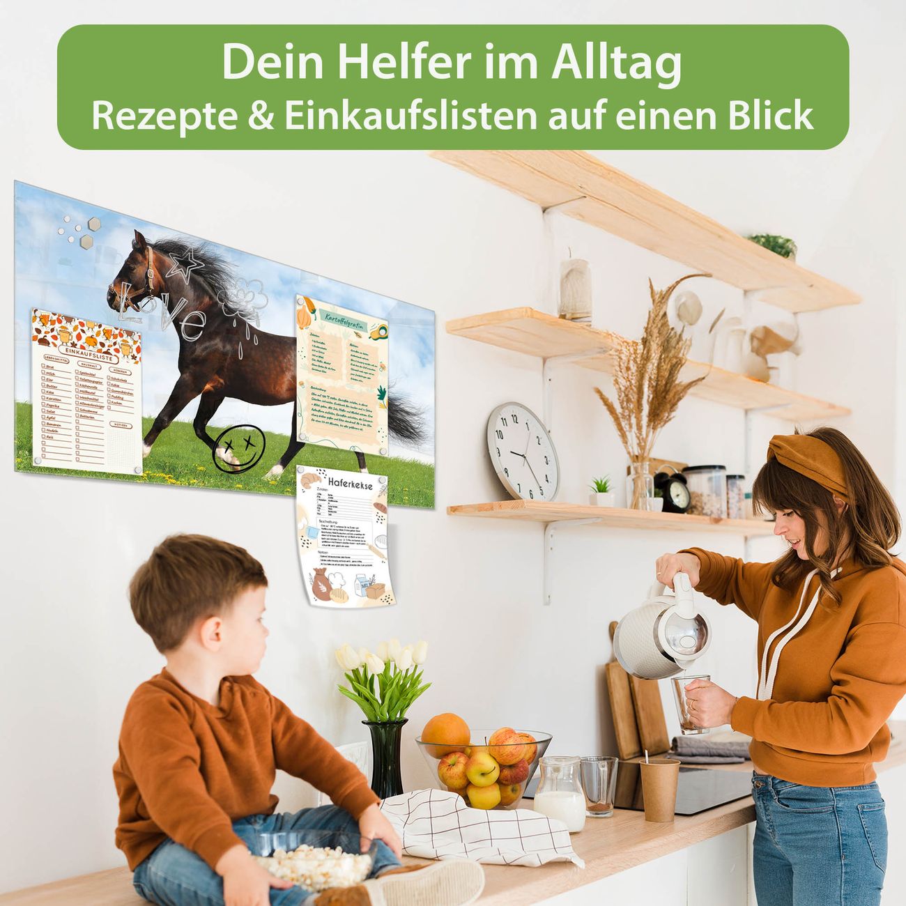 Ein Stück Design, das Ihren Alltag organisiert. Schreiben, heften, inspirieren - alles an einem Ort. Qualität, die man spürt. Montage leicht gemacht. Handwerk mit Herz - veredelt in Sachsen. Einzigartiges Design mit Motiv Motiv Pferd Beschreibbare Glasoberfläche, leicht zu reinigen Starke Magnetkraft durch Stahlrückwand Inklusive 4 Neodym-Magneten Flexible Montageoptionen Handveredelt in Sachsen - Qualität, die bleibt