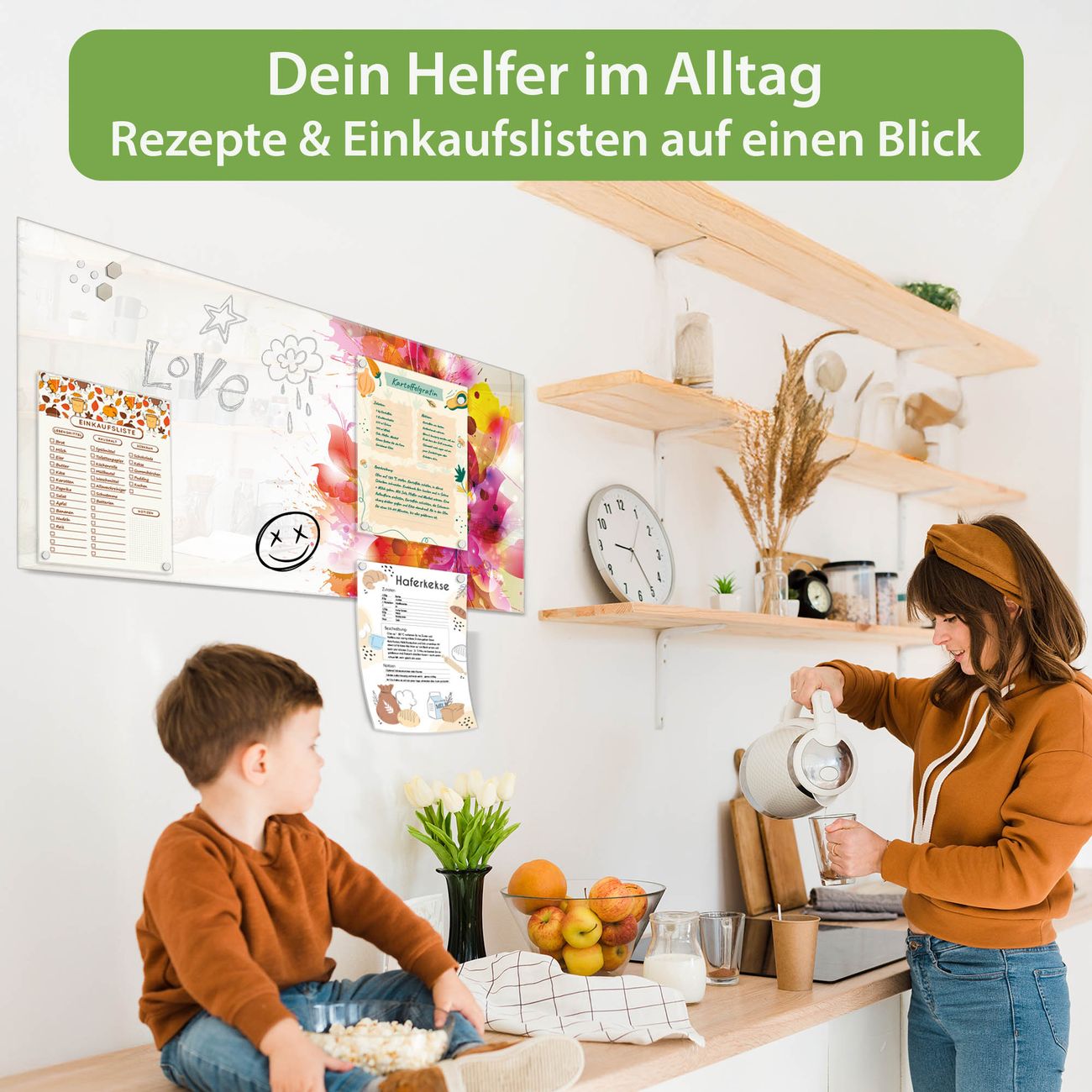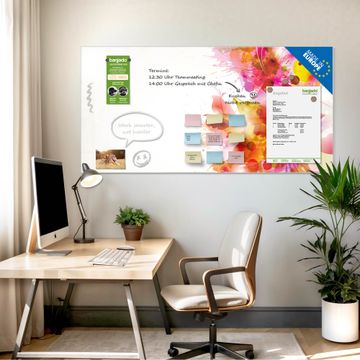 Auf der glatten Glasoberfläche lassen sich Termine, Rezepte oder Notizen ganz einfach mit Kreidestiften festhalten und rückstandslos entfernen. Starke Neodym-Magnete halten Ihre wichtigsten Erinnerungen sicher an Ort und Stelle. So entsteht Ihre ganz persönliche Ideenwand - jeden Tag neu.