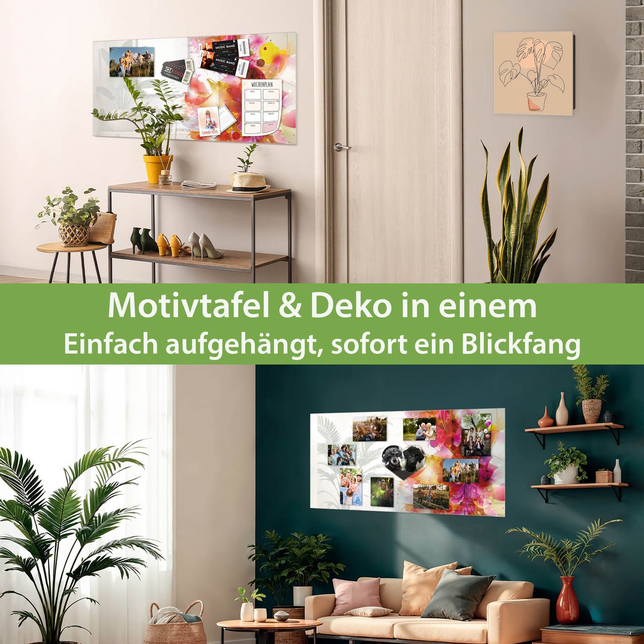 Dank der flachen Bauweise wirkt die Magnetwand fast schwebend an der Wand. Sie können sie mit Montagekleber elegant befestigen oder mit einem passenden Set klassisch verschrauben - beides sorgt für sicheren Halt und eine dezente Optik.