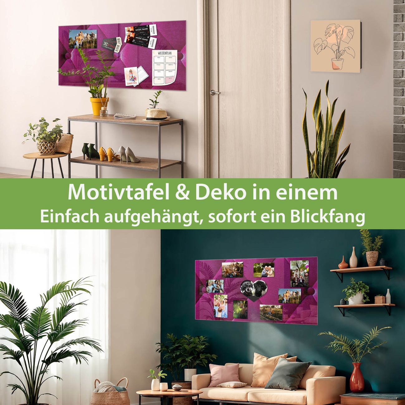Die banjado Glas Magnettafel mit dem Motiv Motiv Pink Polster verbindet Funktionalität mit Stil. Sie ersetzt das Zettelchaos durch klare Strukturen und bringt dabei eine warme, natürliche Atmosphäre in Ihr Zuhause. Ob im Büro, in der Küche oder im Eingangsbereich - dieses Design-Board zieht Blicke an und sorgt für Ordnung mit Charakter.